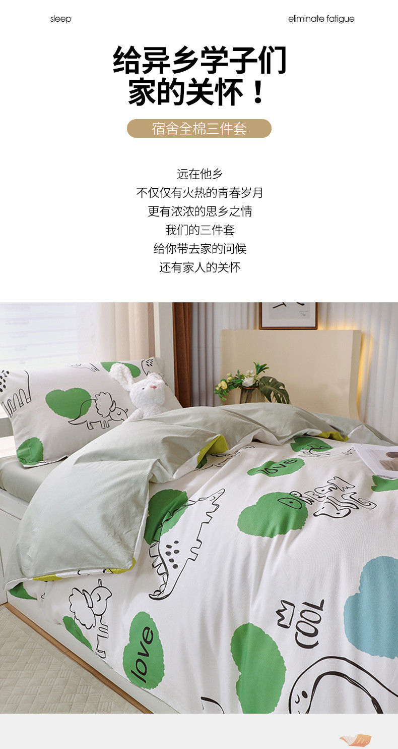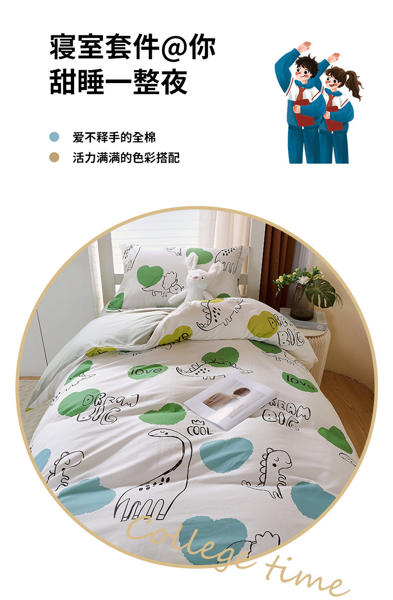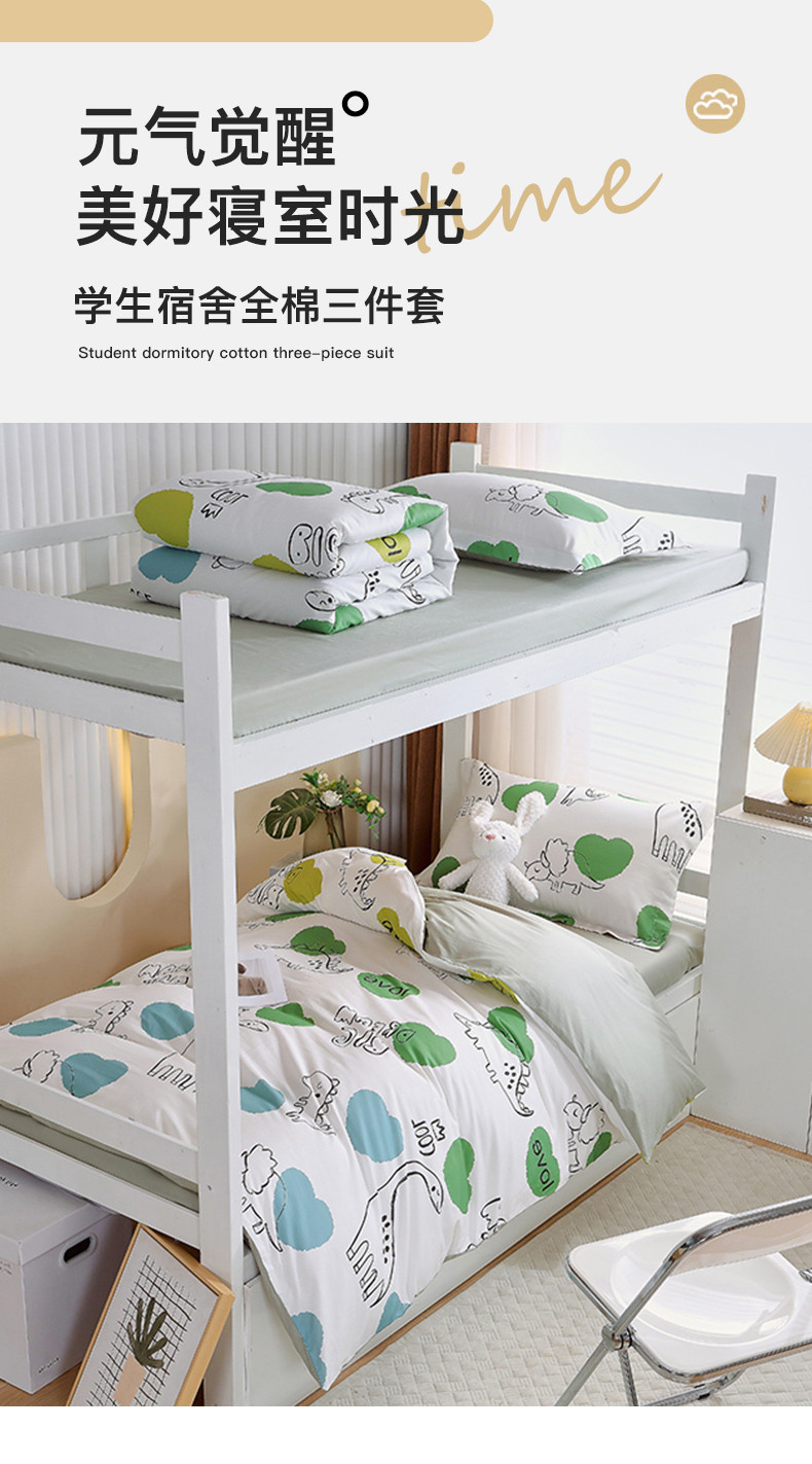金鑫汇 2023新款全棉宿舍印花三件套 恐龙世纪