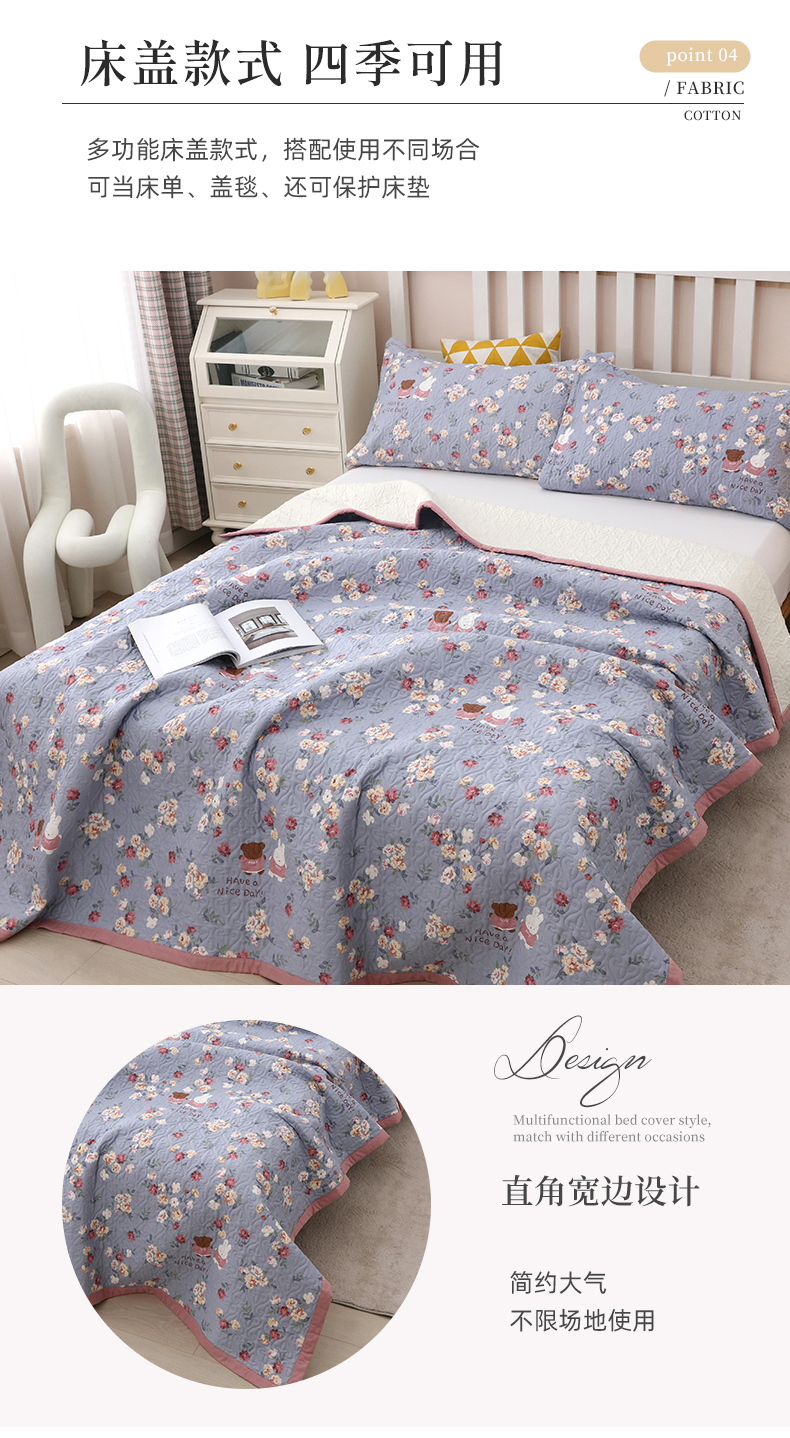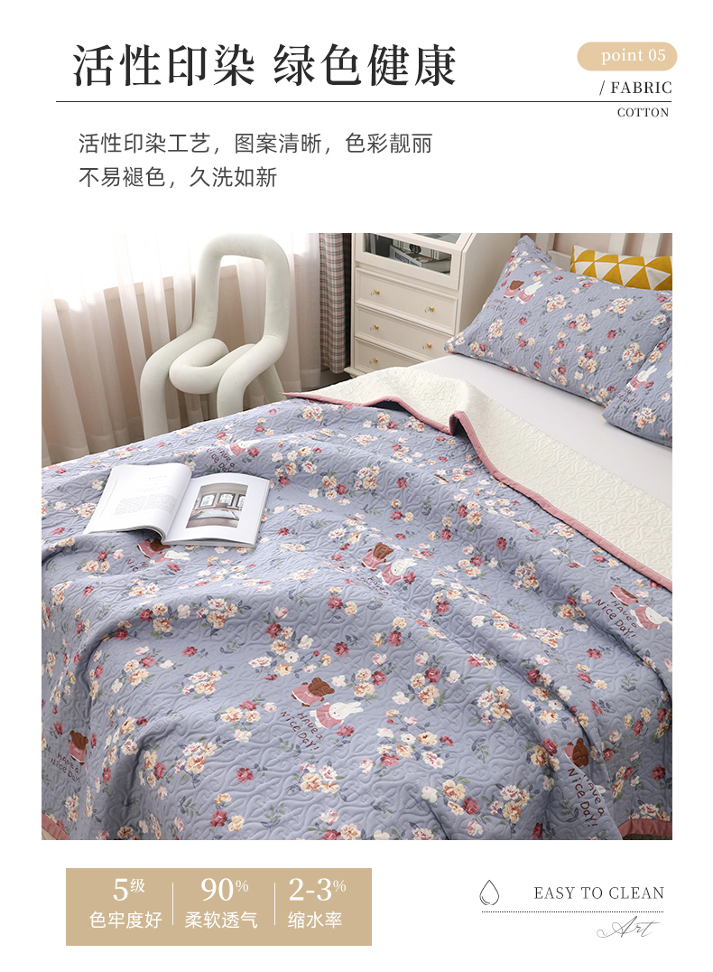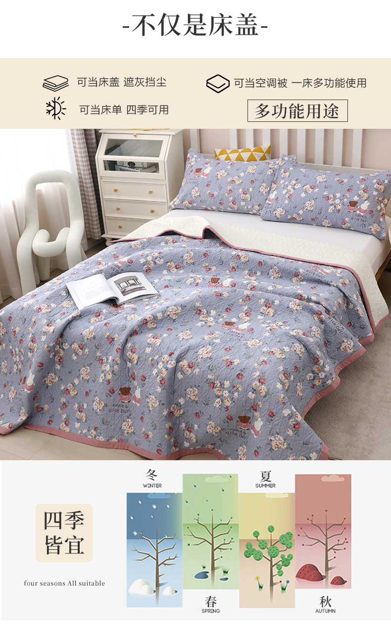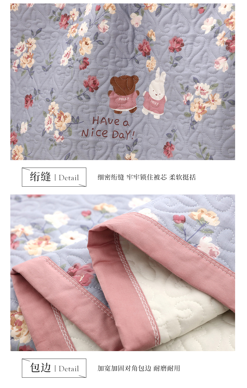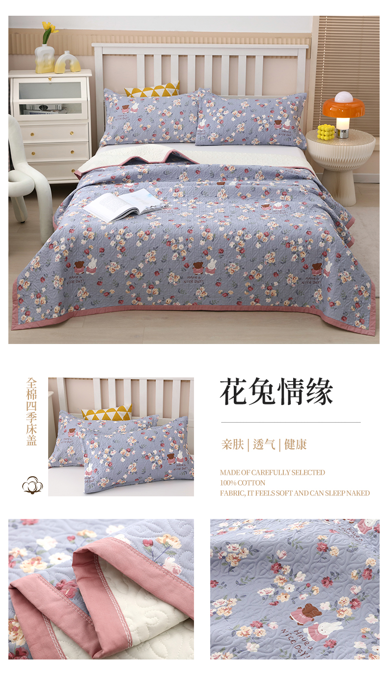 40支全棉夹棉绗缝13372简约款印花多功能床盖夏被凉席 花兔情缘