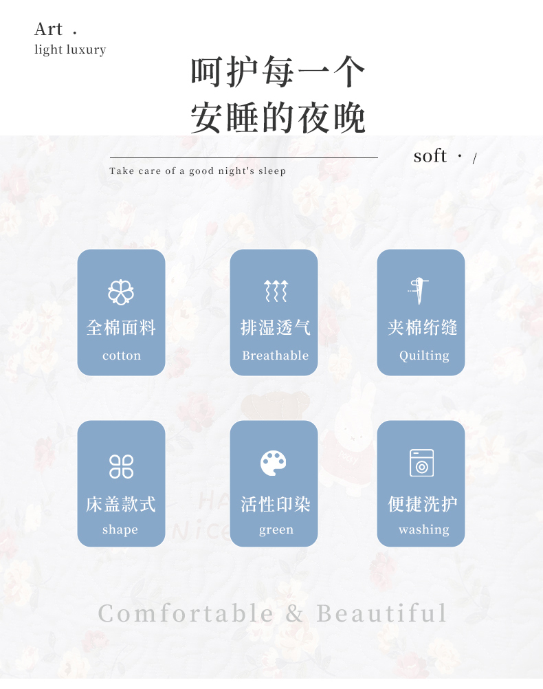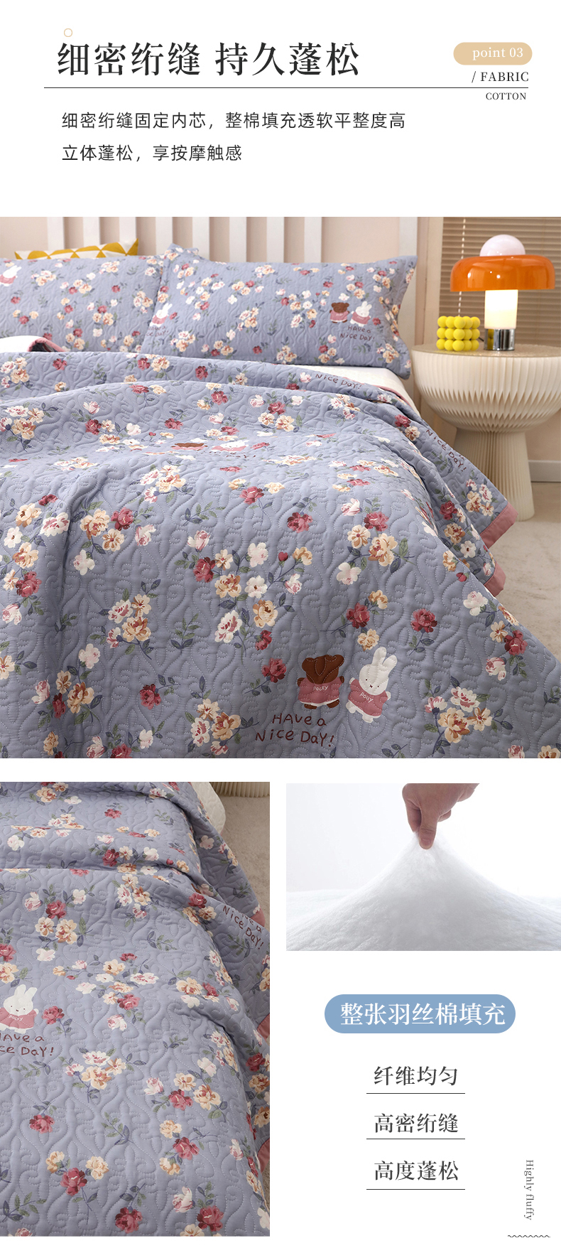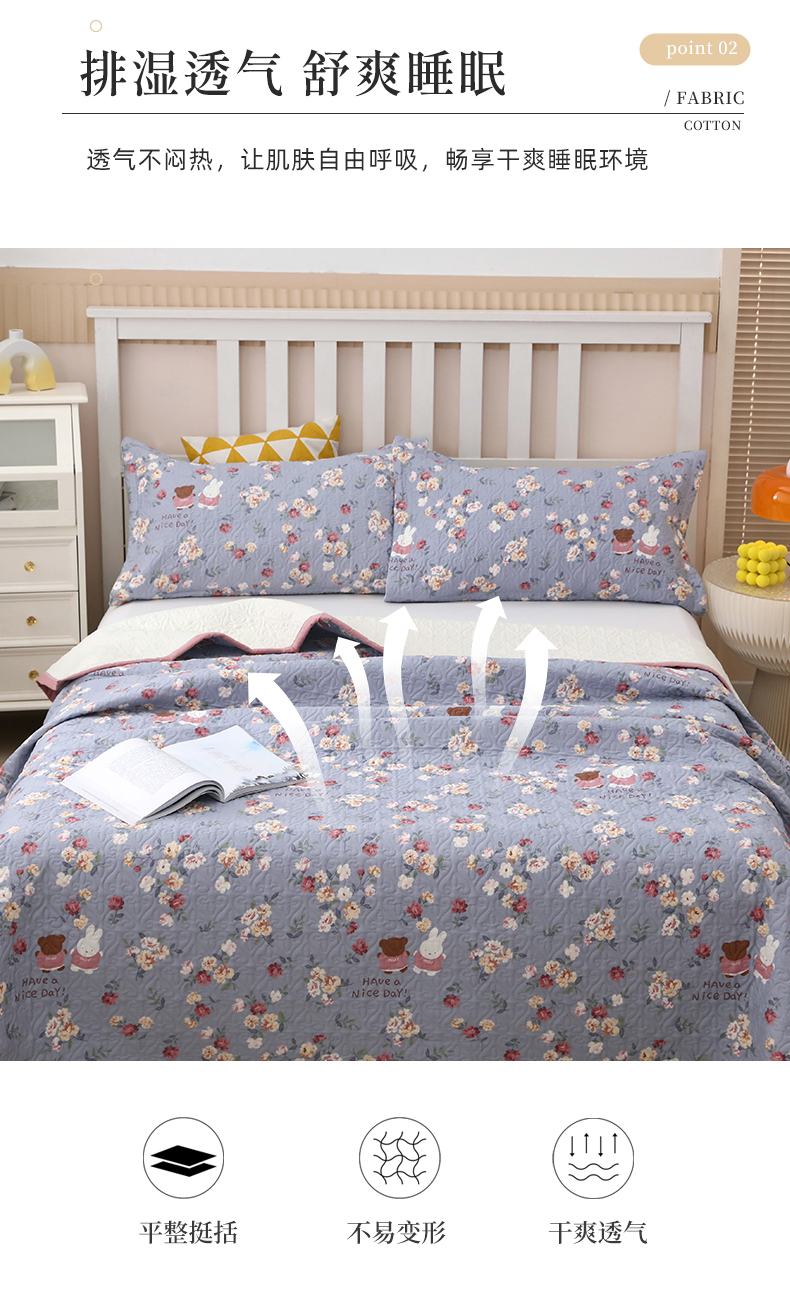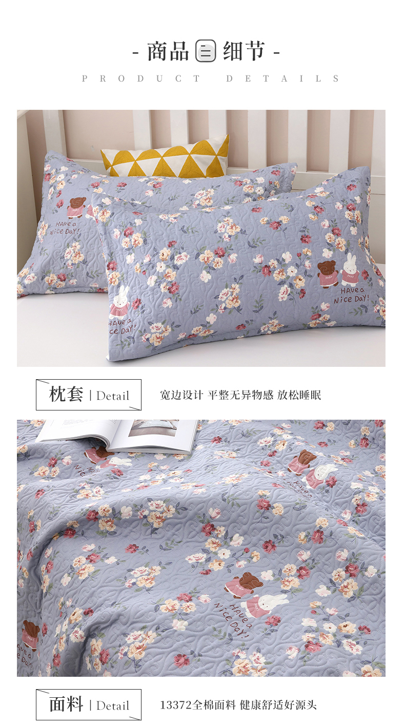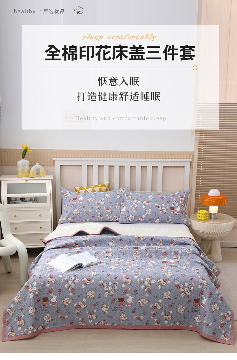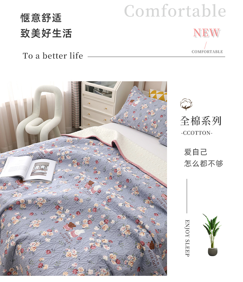 40支全棉夹棉绗缝13372简约款印花多功能床盖夏被凉席 花兔情缘