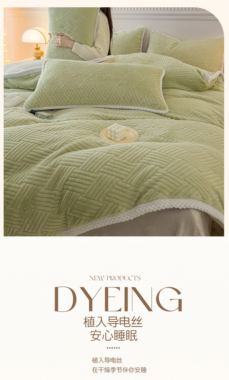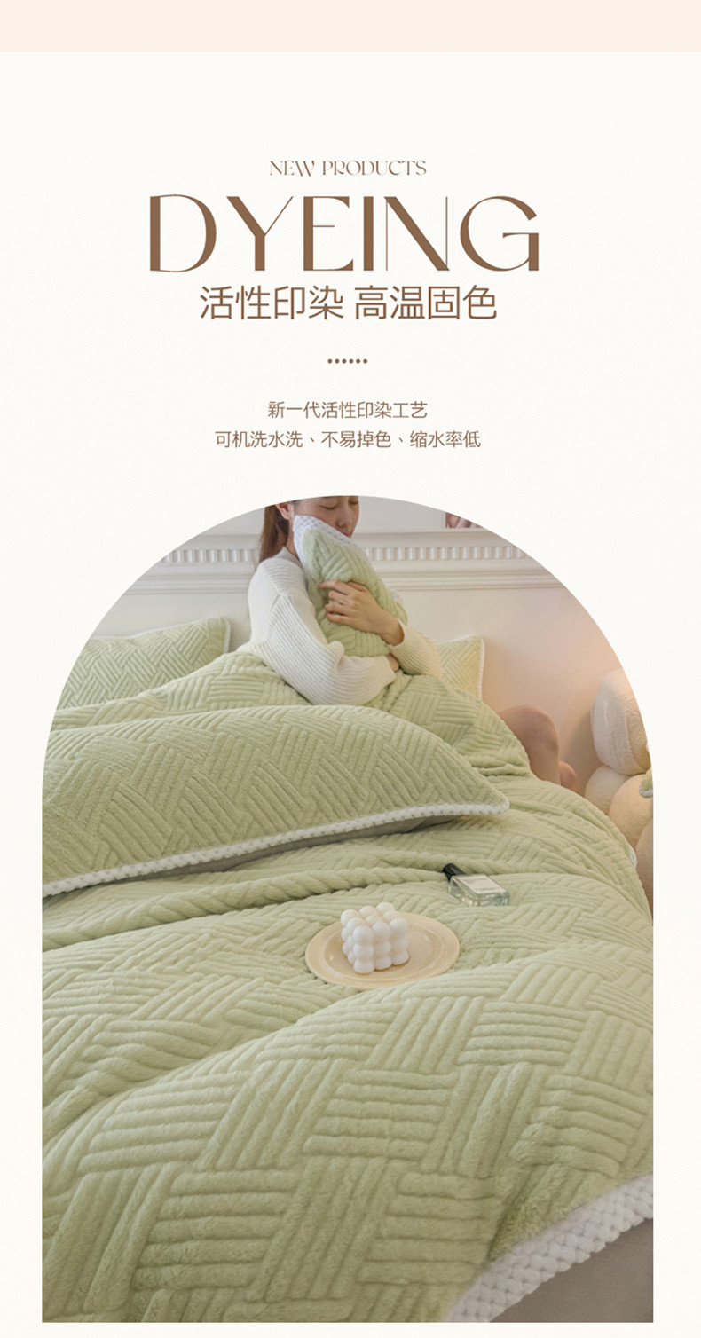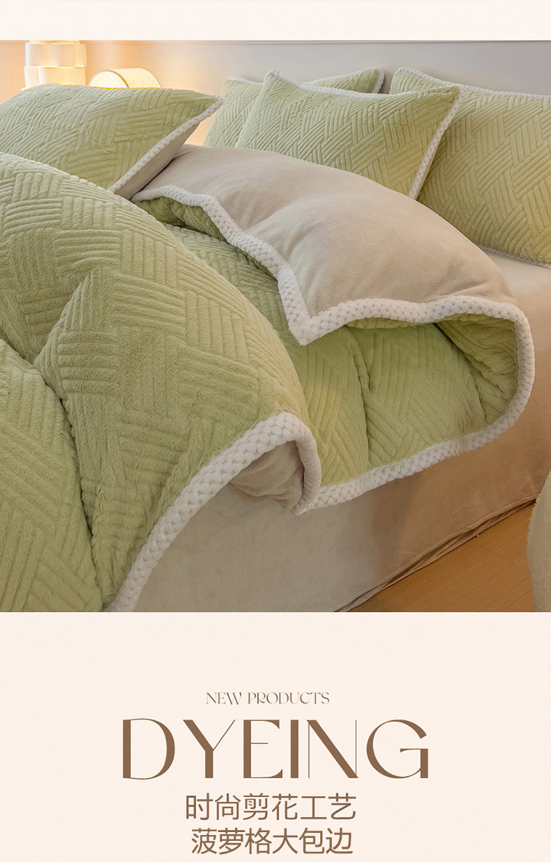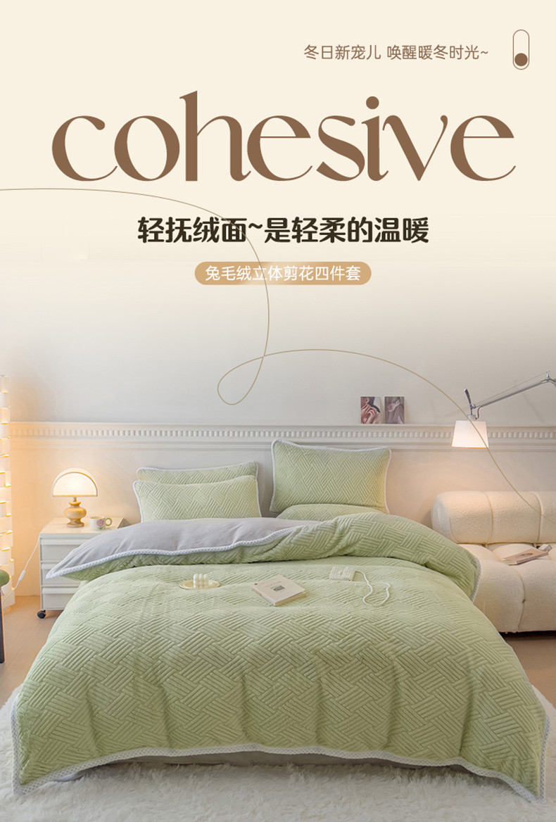 菲儿家纺 2023新款小兔毛绒立体剪花四件套 小兔毛-方块绿