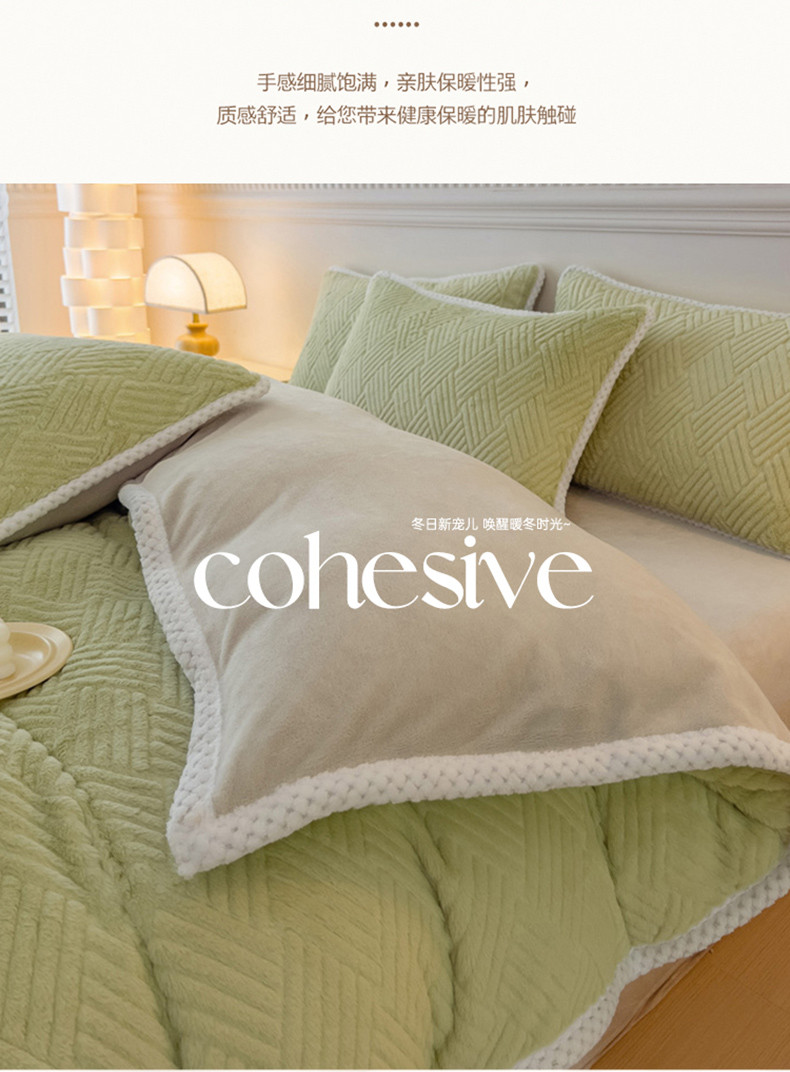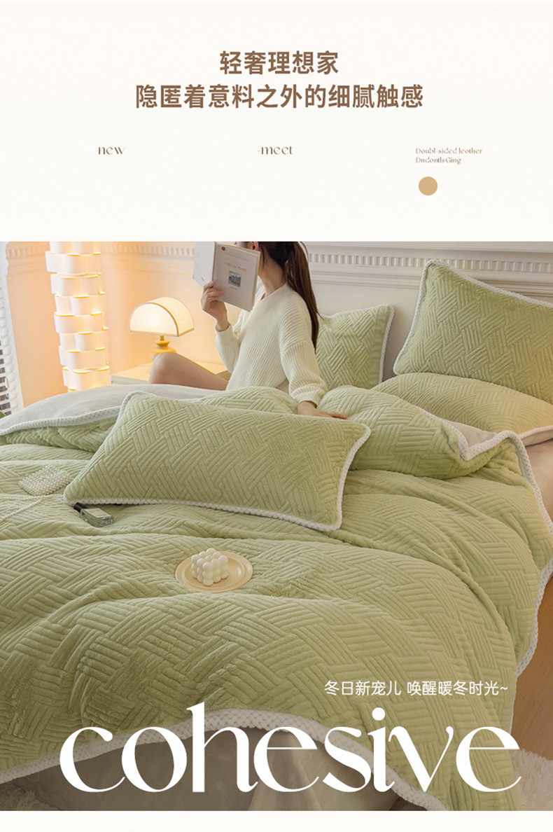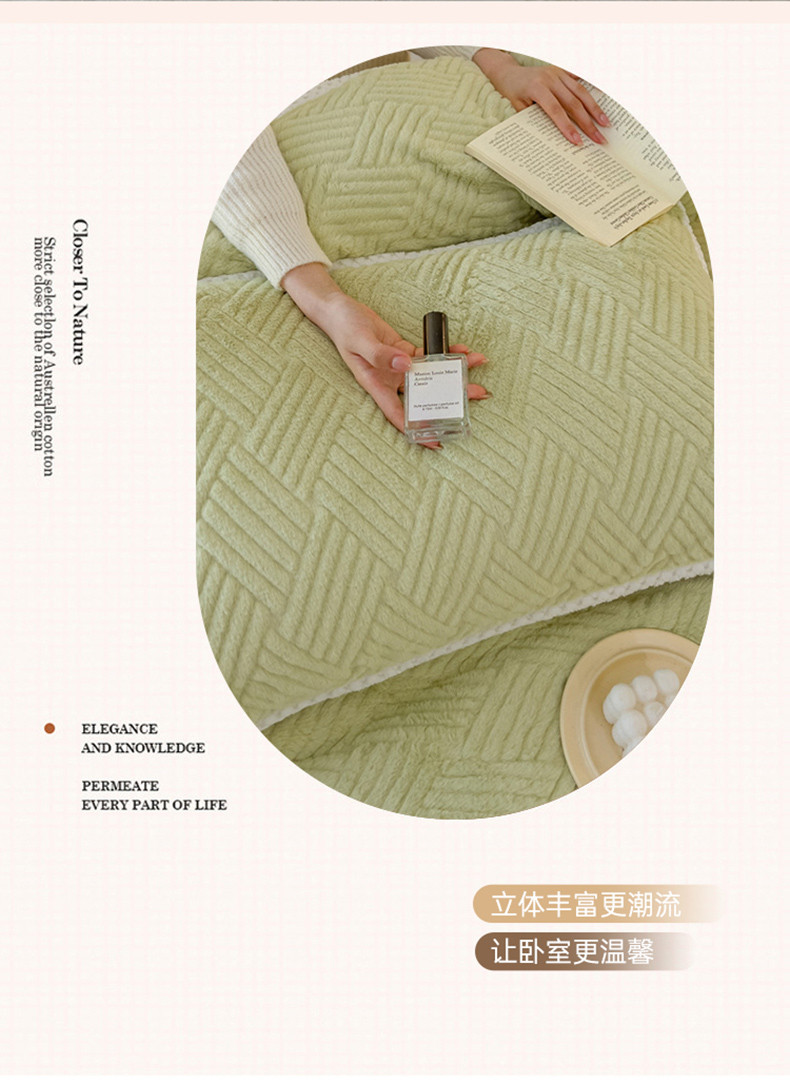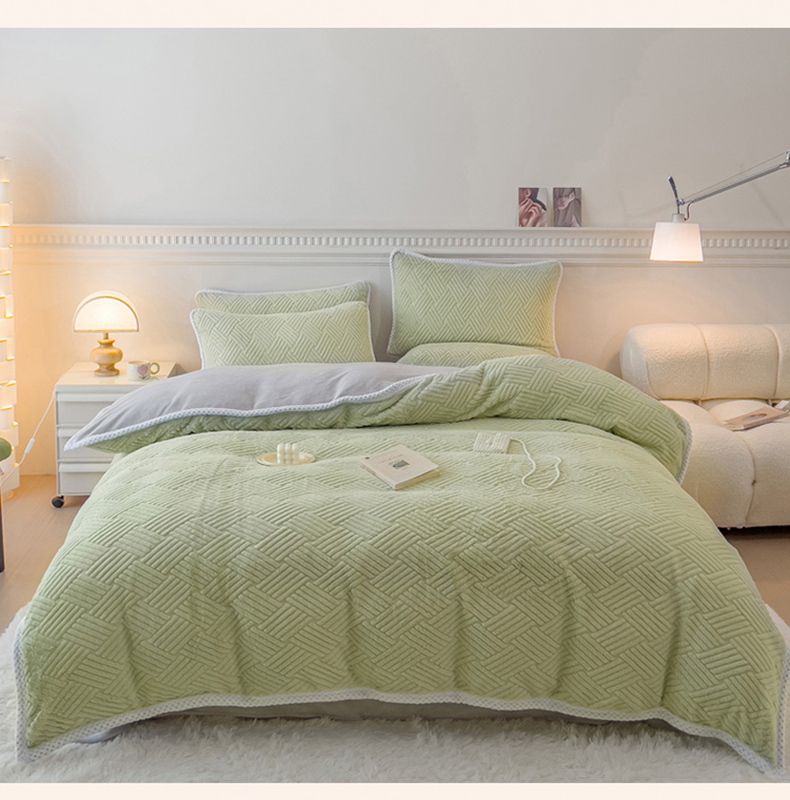 菲儿家纺 2023新款小兔毛绒立体剪花四件套 小兔毛-方块绿