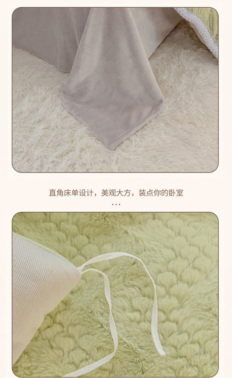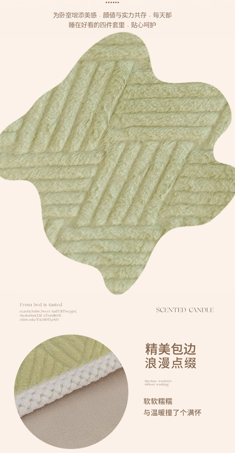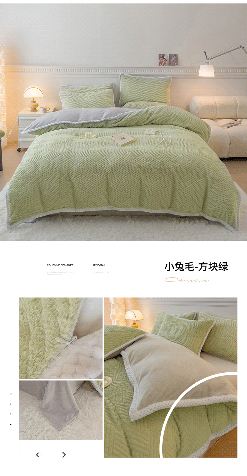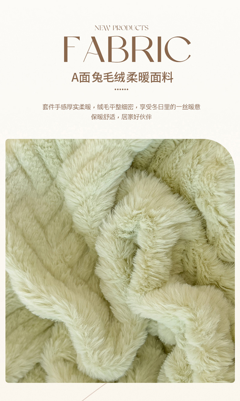 商品名称:菲儿家纺 2023新款小兔毛绒立体剪花四件套 小兔毛-方块绿