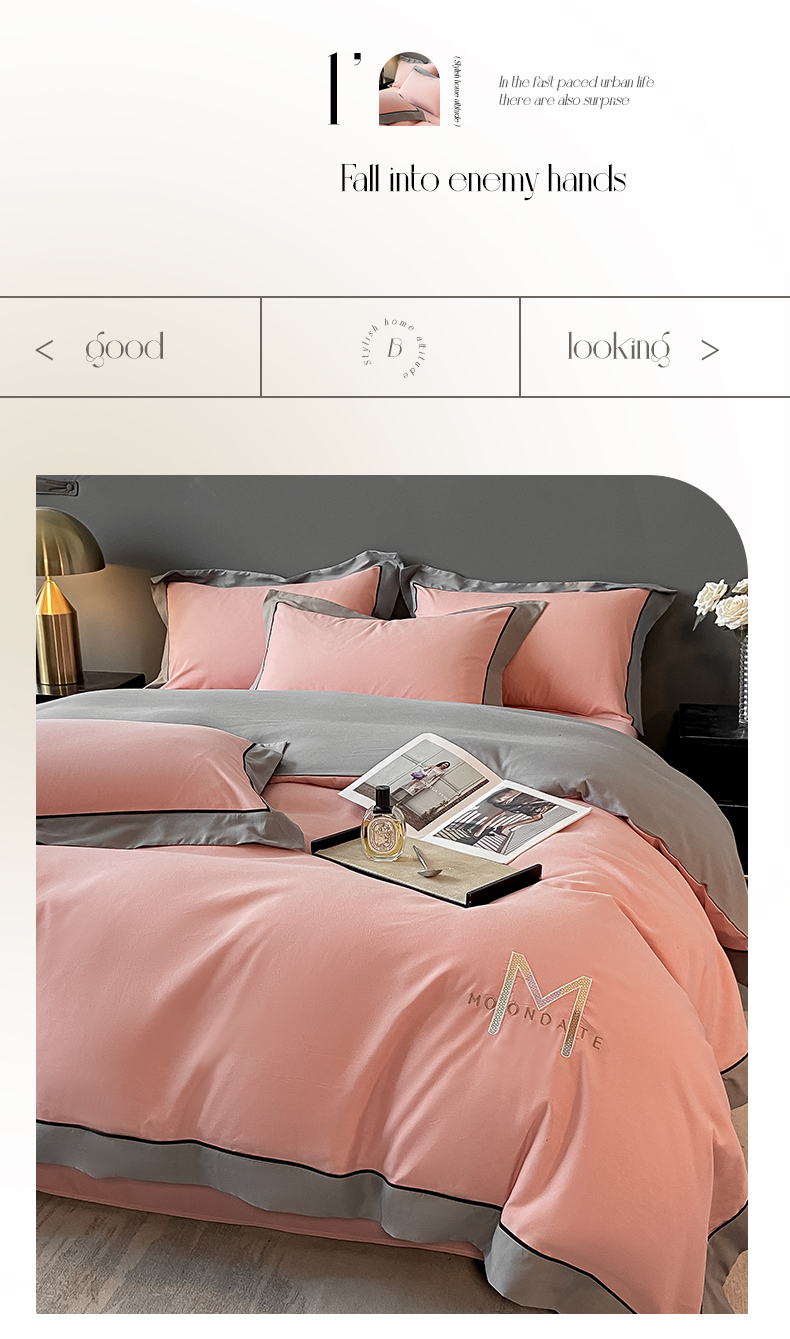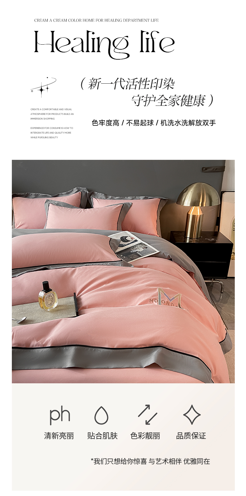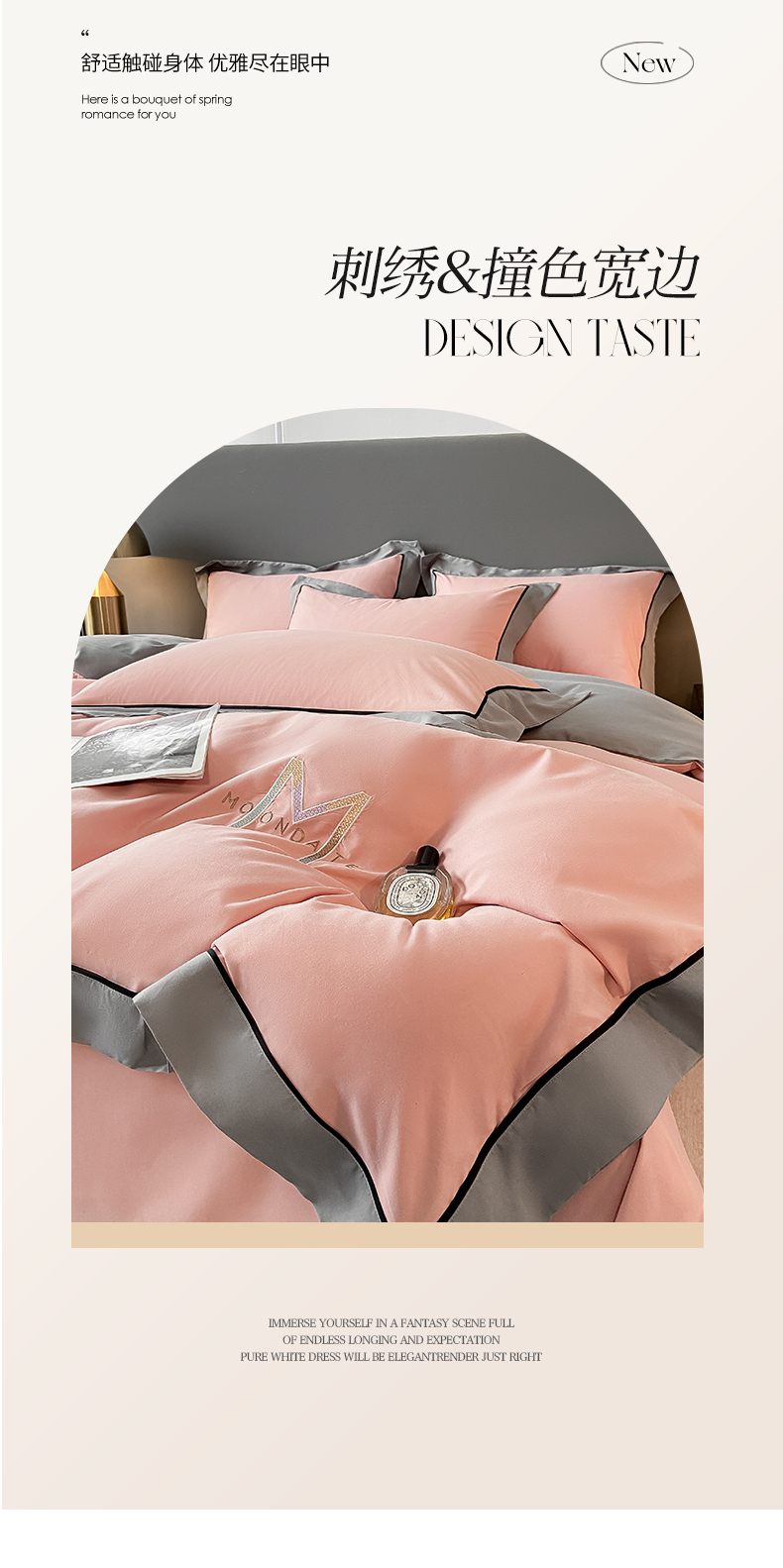 (总)遇见家居生活馆 2025新款A类牛奶绒玛利亚绒宽边四件套(控价:标准178,加大188,床笠款183),靓粉+星辰灰,丁香紫+星辰灰,清澈蓝+星辰灰,奶昔白+亚麻驼,经典灰+香槟,宾利蓝+星辰灰