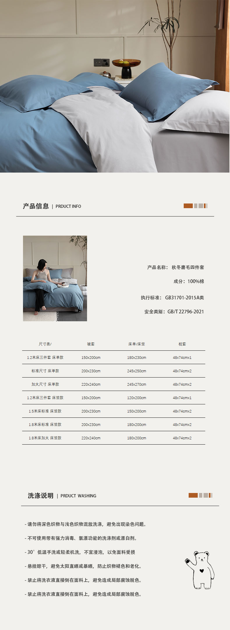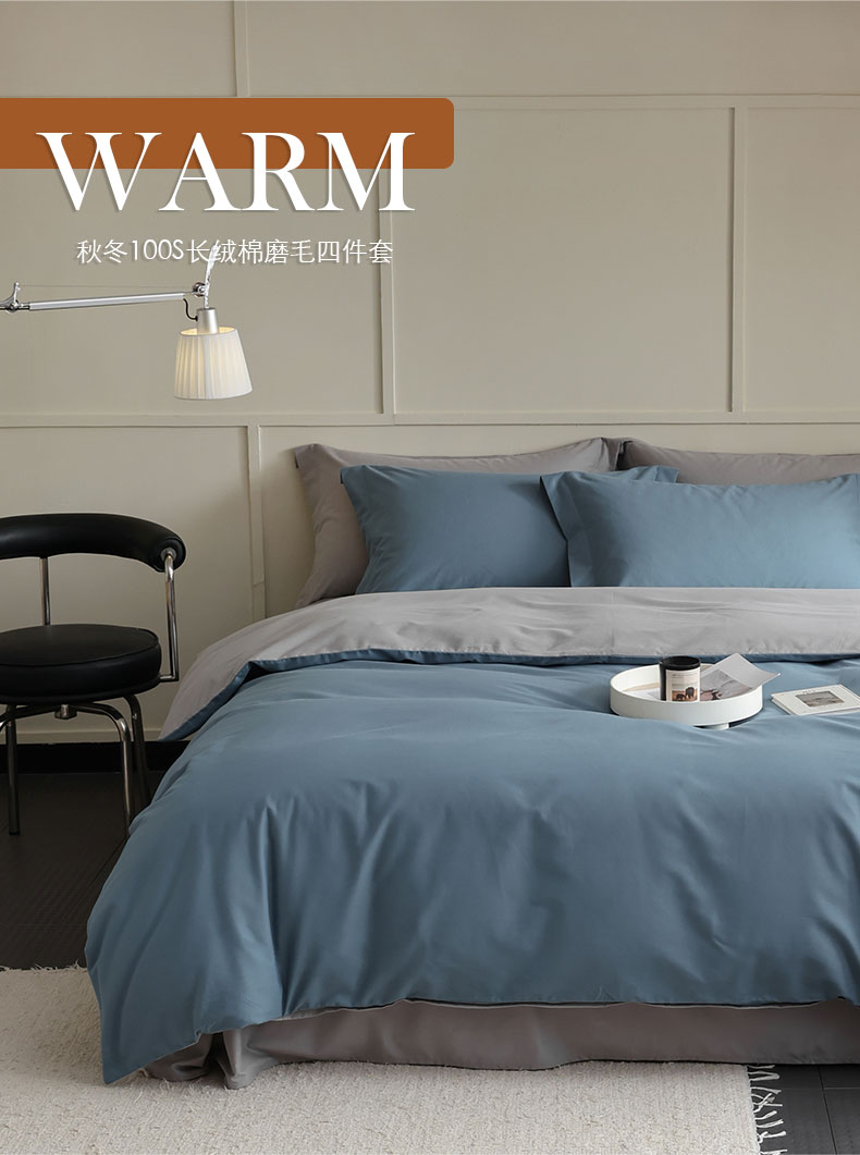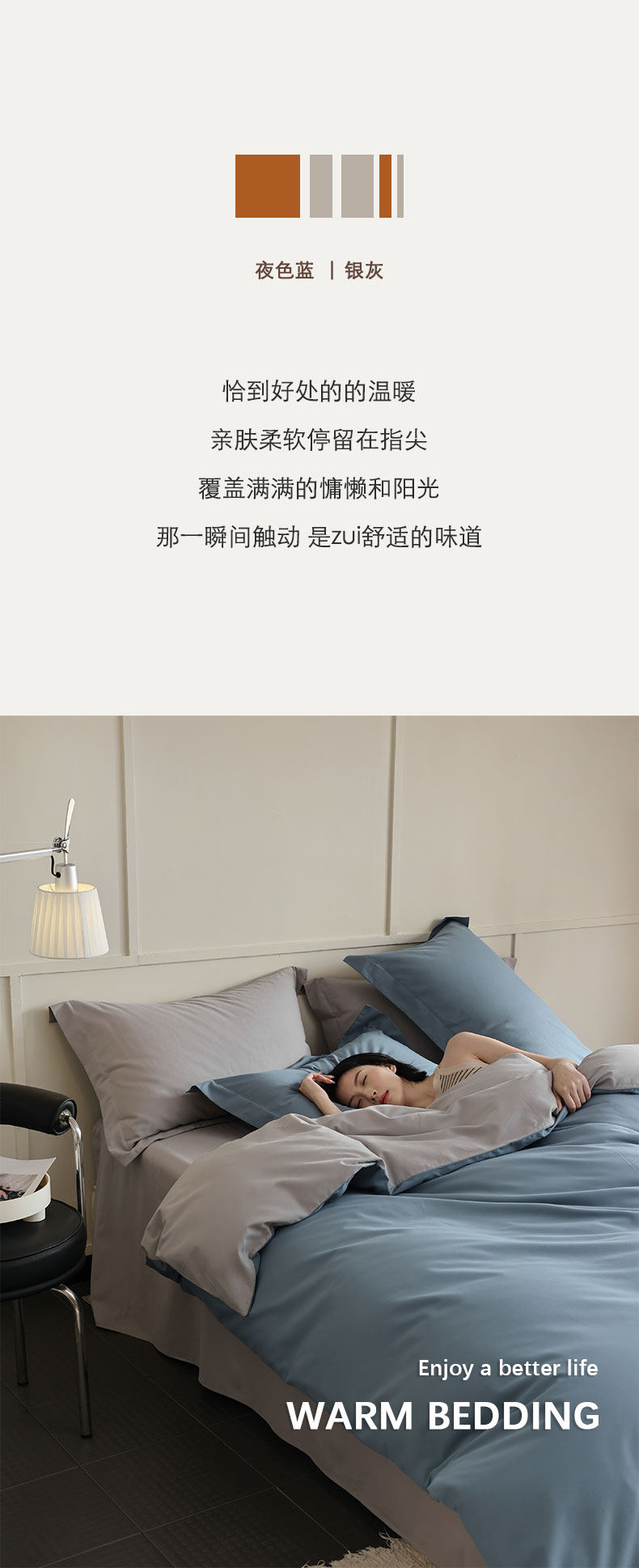 当前位置: 91家纺网 > 商品网购 > 床品套件 > 四件套 > 全棉活性四件套 > 2023新款A类加厚50s超柔全棉长绒棉磨毛四件套 夜色蓝+银灰