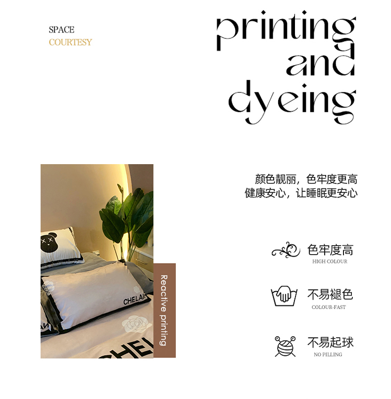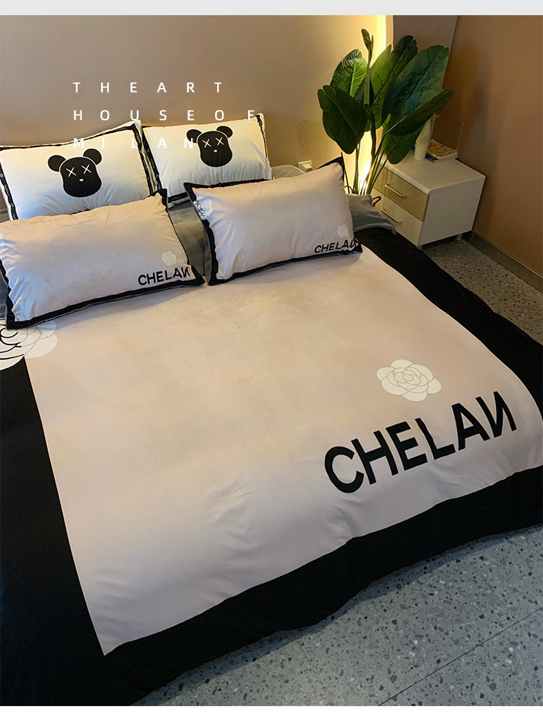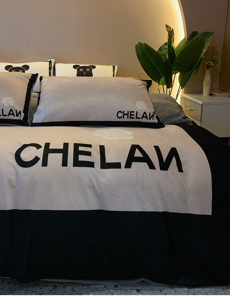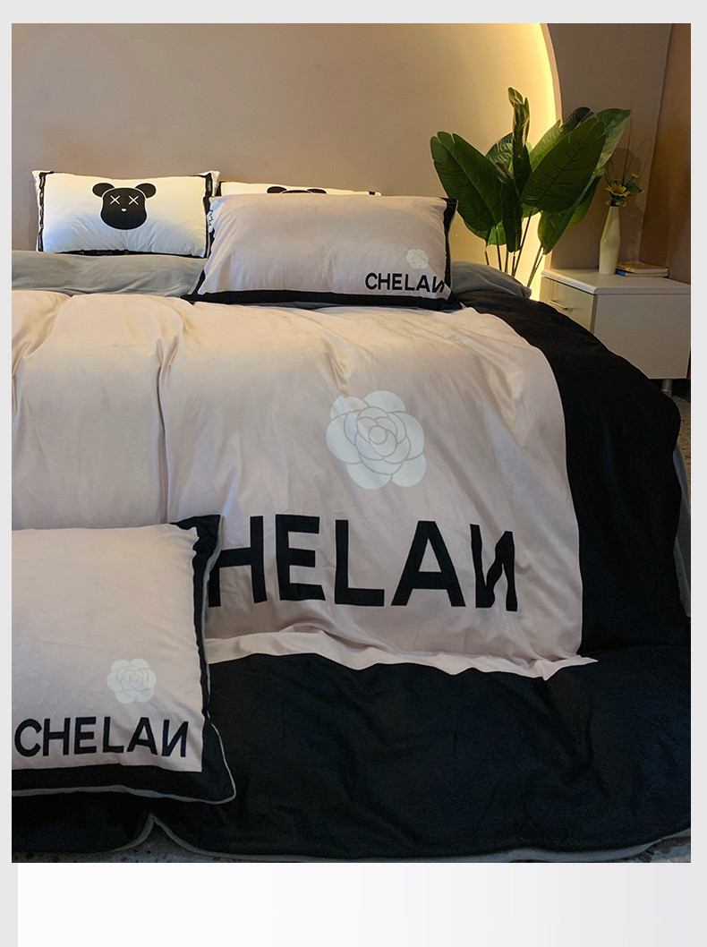 商品名称:色鬼布艺 2023新款活性数码印花牛奶绒四件套-场景二 小香风字母