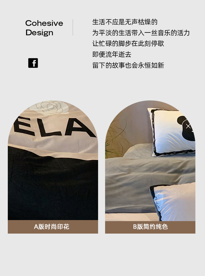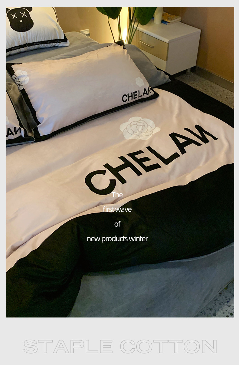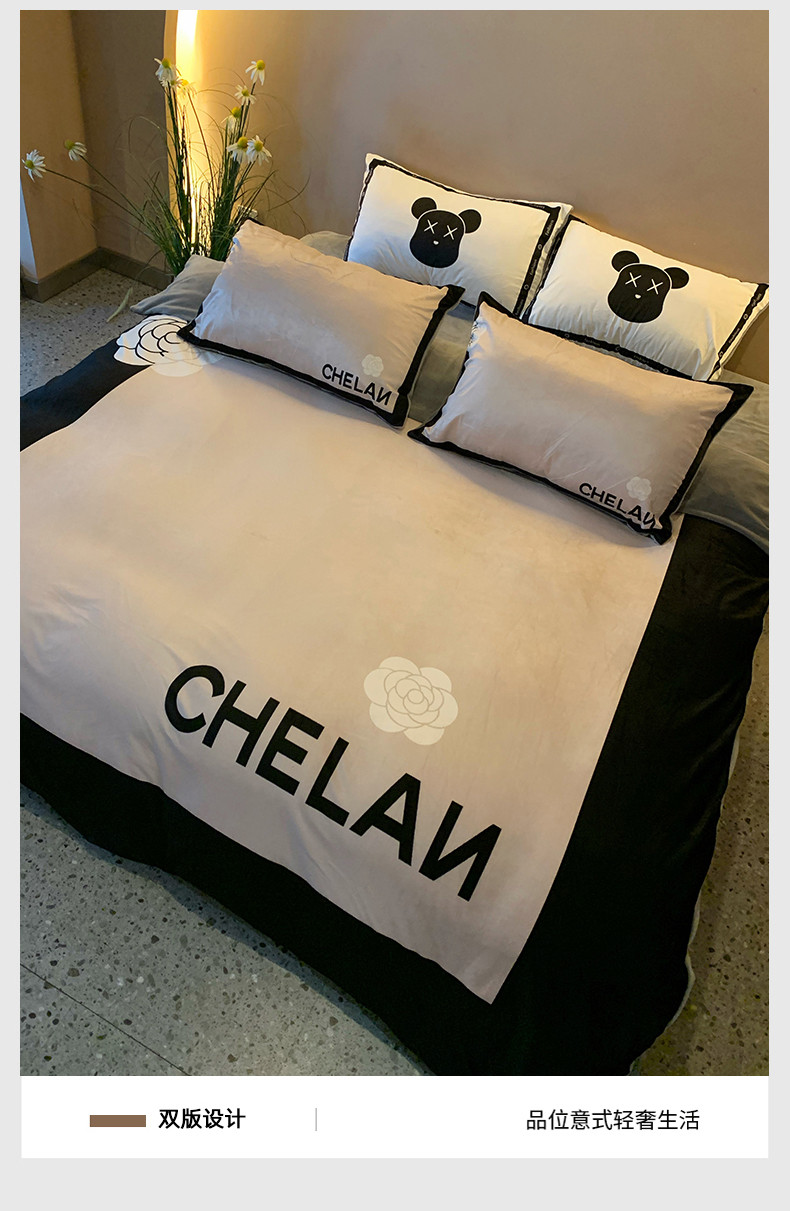 色鬼布艺 2023新款活性数码印花牛奶绒四件套-场景二 小香风字母