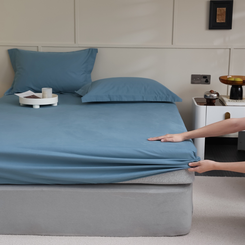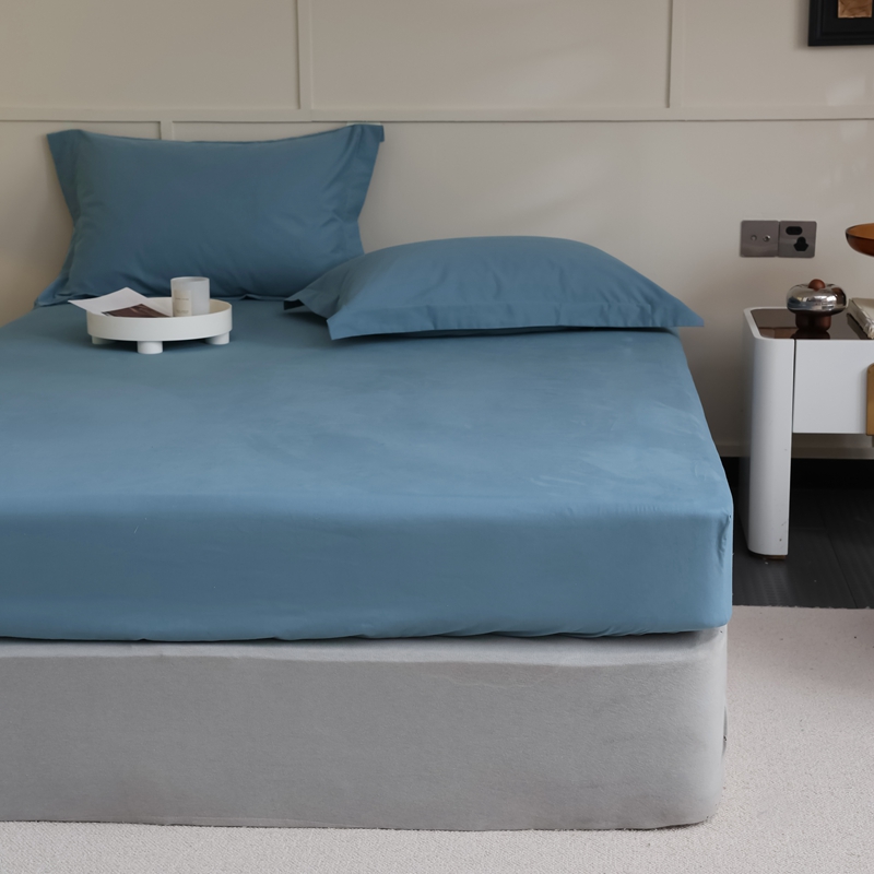 蕊姿家居 2023新款A类加厚50s超柔全棉长绒棉磨毛床笠 夜色蓝