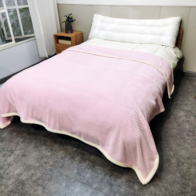 卉晨毛毯家纺 2024新款菠萝格毯空调毯午睡毯毛毯 浅粉