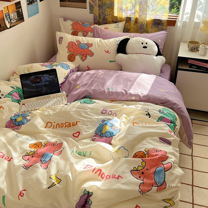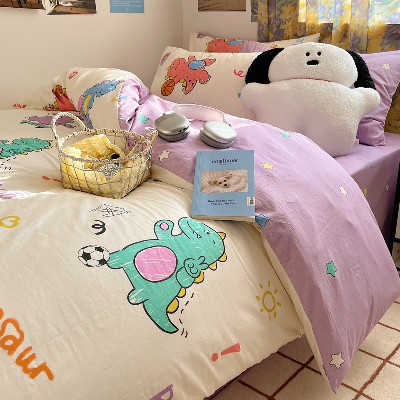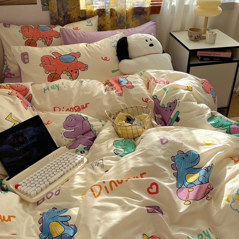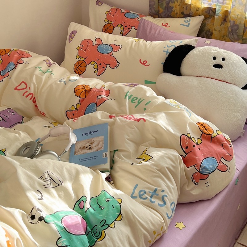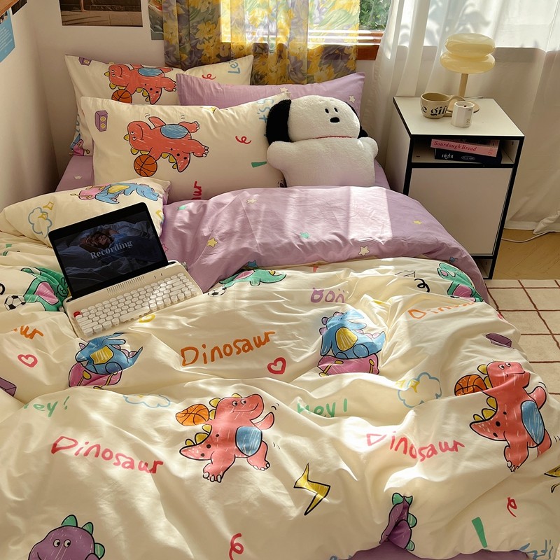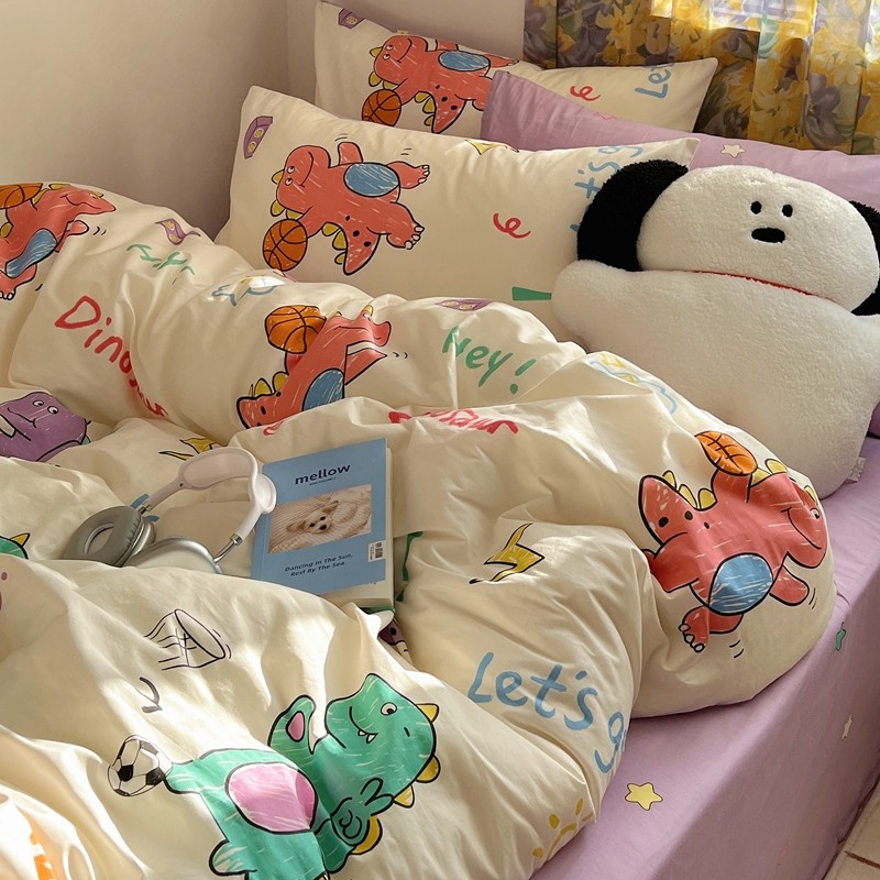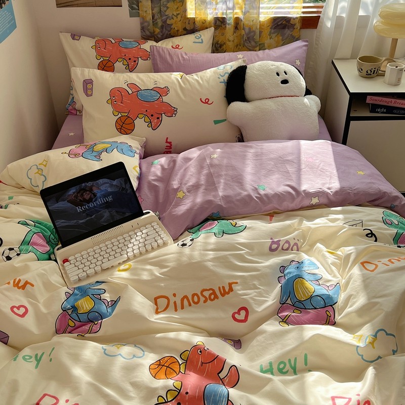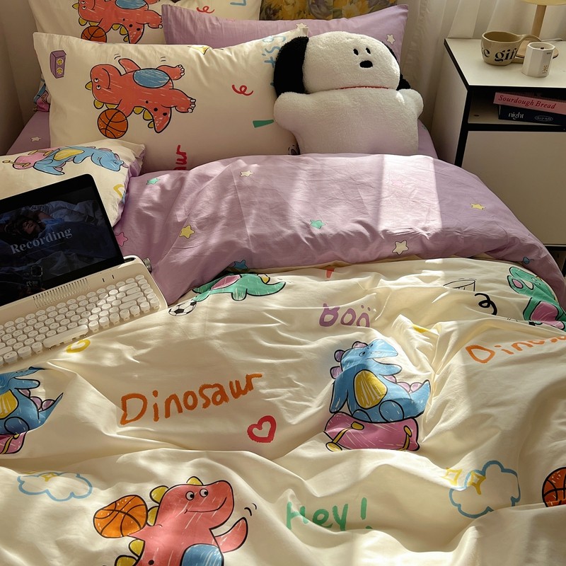 桃喜 2024开学季新款40支13372全棉四件套 多巴胺恐龙