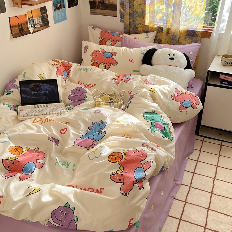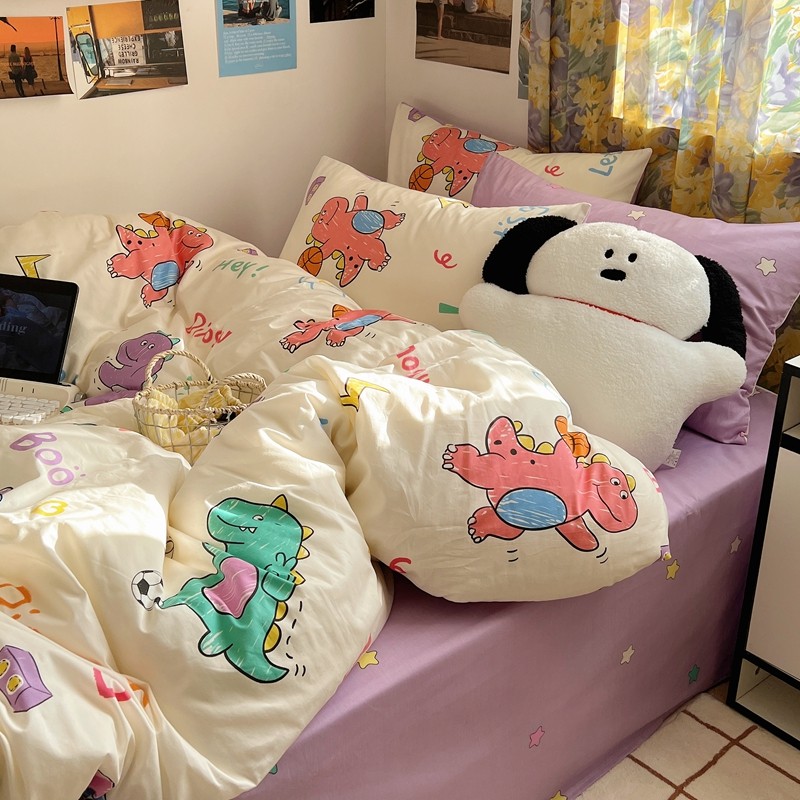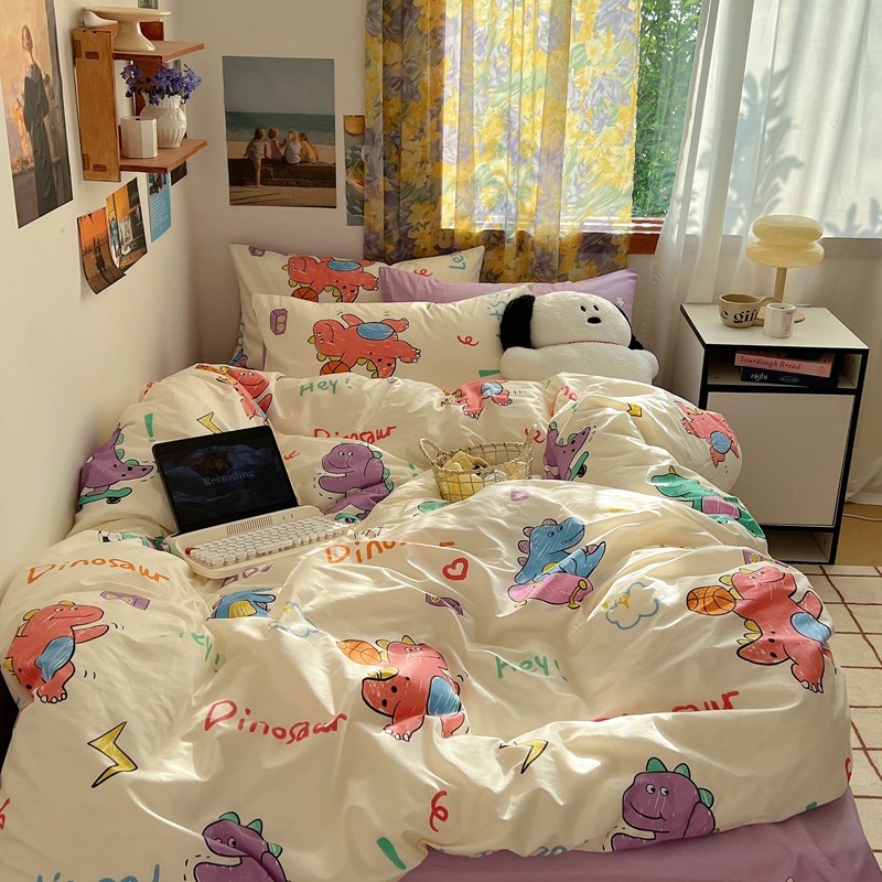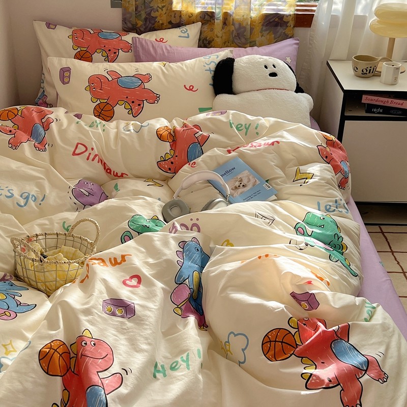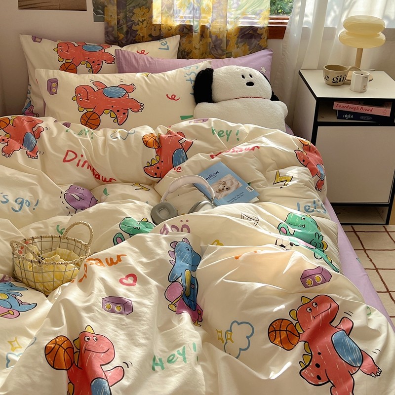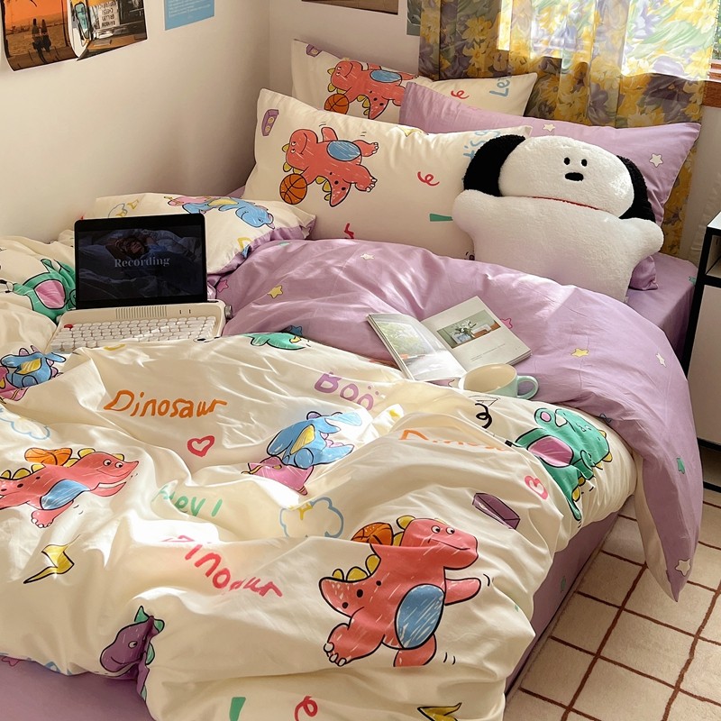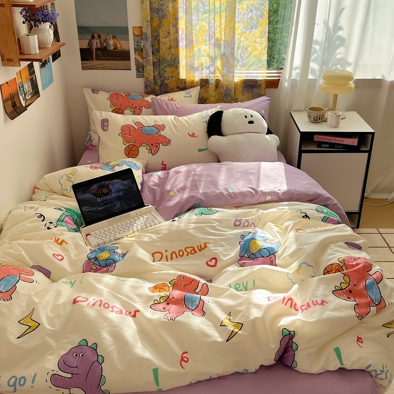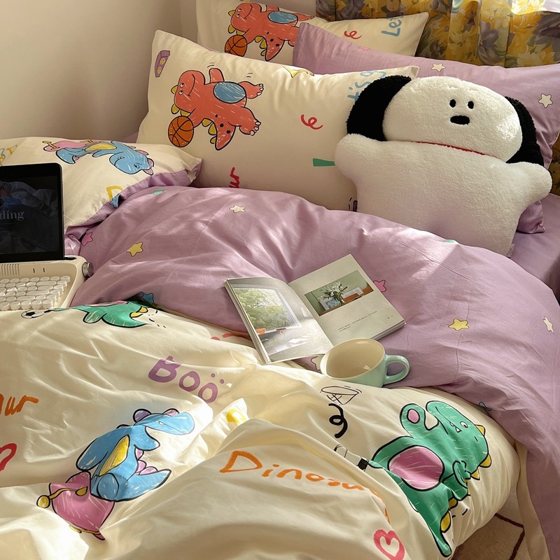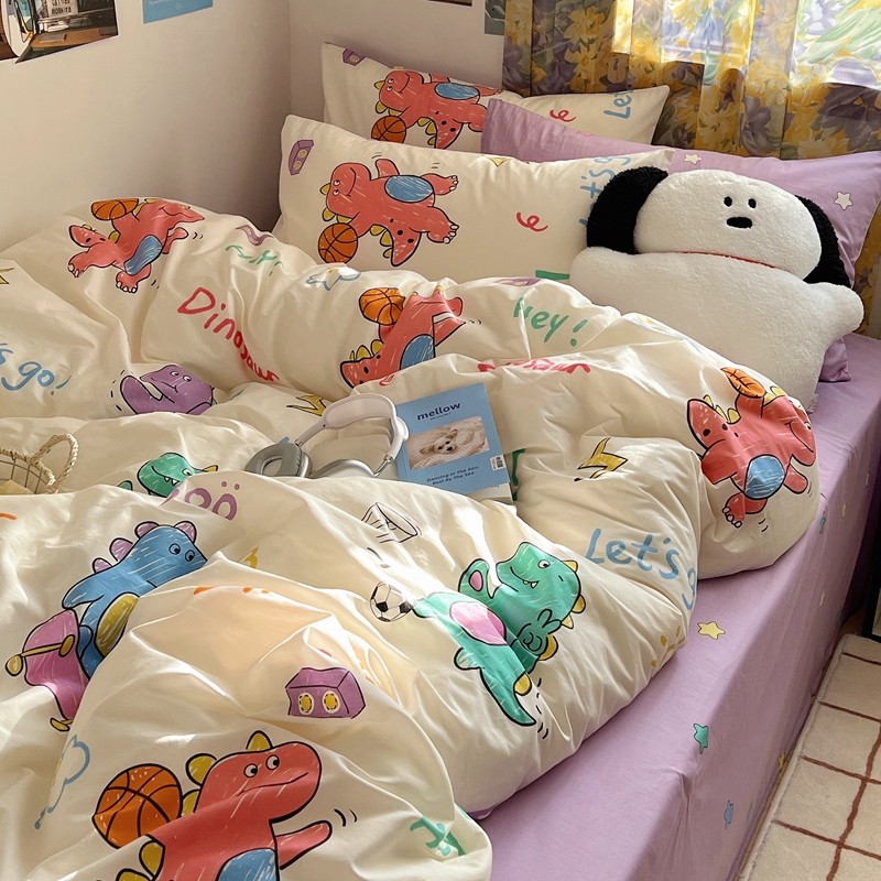 桃喜 2024开学季新款40支13372全棉四件套 多巴胺恐龙