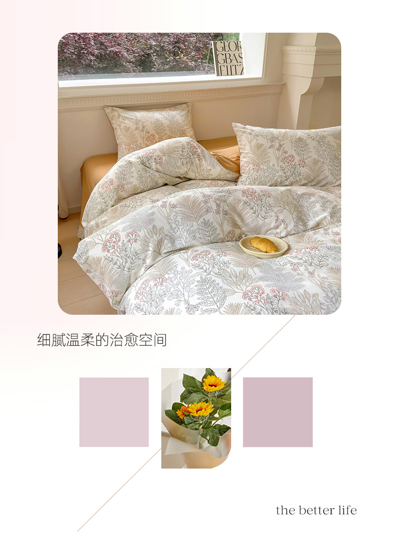 (总)田野 2022新款水洗棉小清新小碎花全棉四件套,花丛,花涧,绿婉,曼舞,桃夭,甜馨草莓,兔兔,银杏