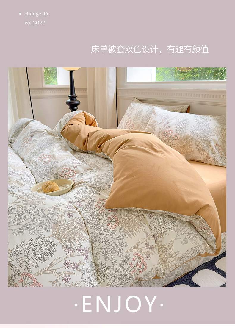 商品名称:田野 2023新款全棉加厚活性磨毛四件套 晨晓 桔