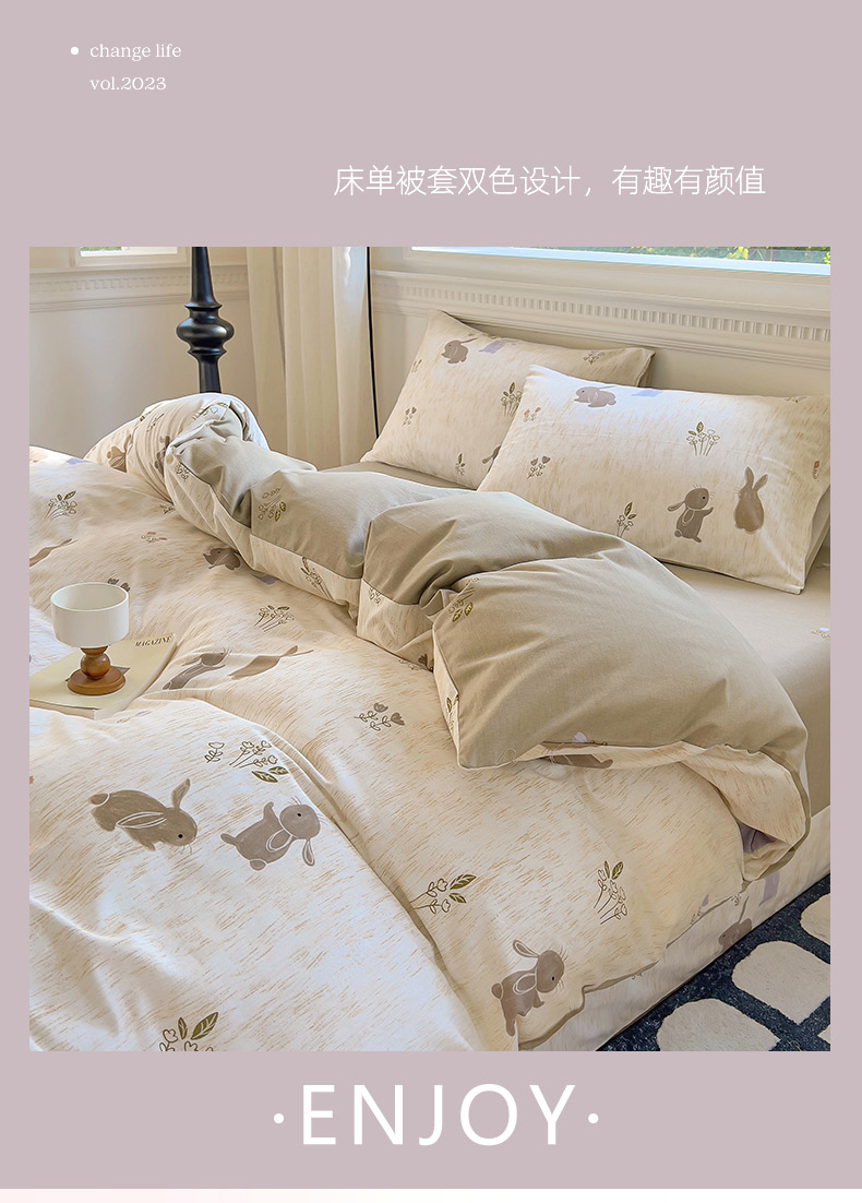 (总)田野 2022新款水洗棉小清新小碎花全棉四件套,花丛,花涧,绿婉,曼舞,桃夭,甜馨草莓,兔兔,银杏