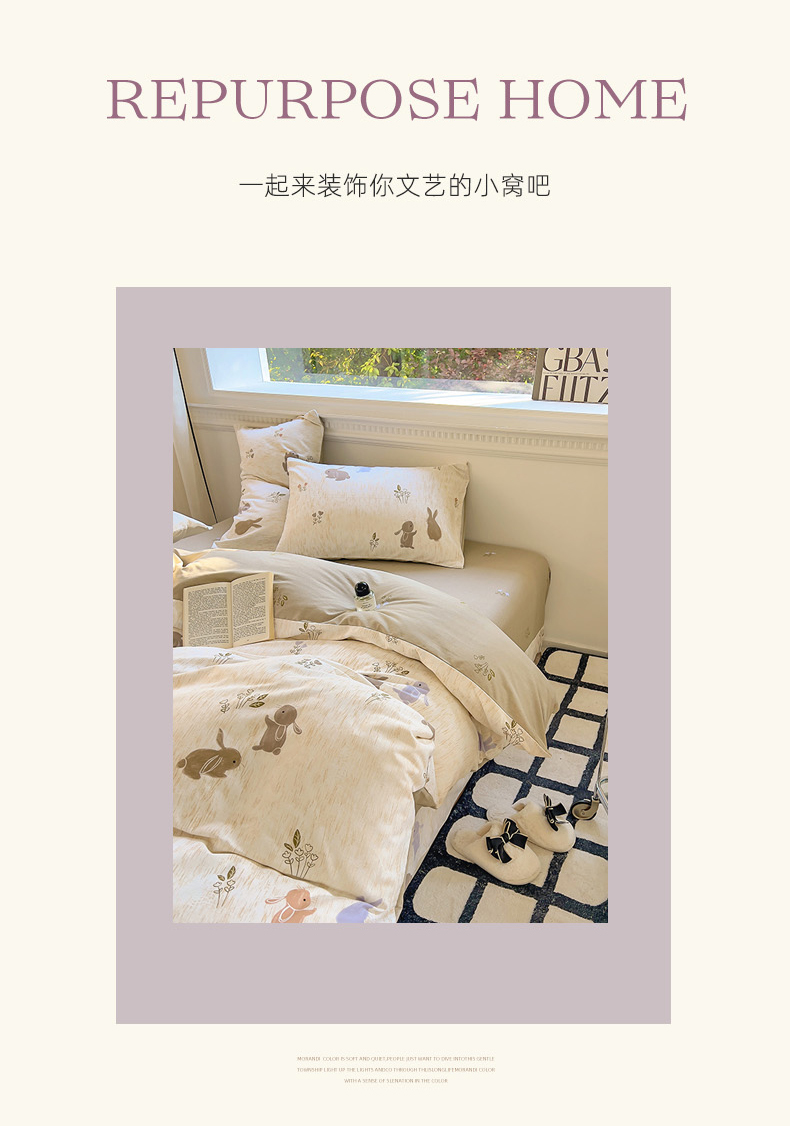 (总)田野 2023新款全棉A类贝壳边双层纱四件套,饼干熊,波波兔,呆萌熊,萌宠乐园,萌兔森林,甜心小兔,薇拉,小蘑菇,伊甜