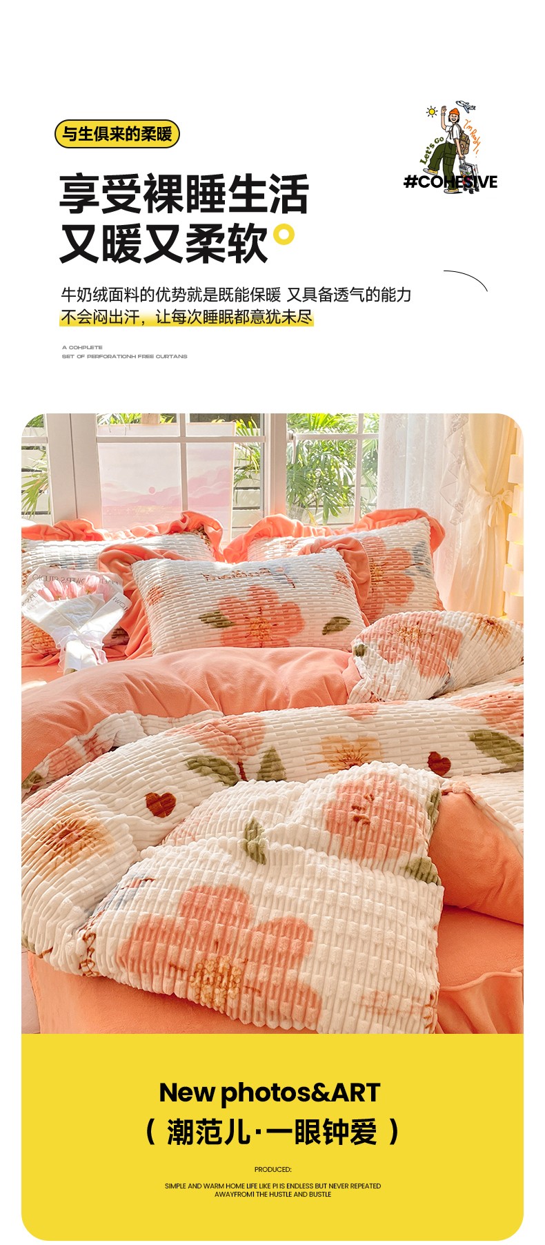 当前位置: 91家纺网 > 商品网购 > 床品套件 > 四件套 > 牛奶绒四件套 > 摩妮卡 2025新款小清新高克重提花牛奶绒四件套玉米绒单被套 芬然