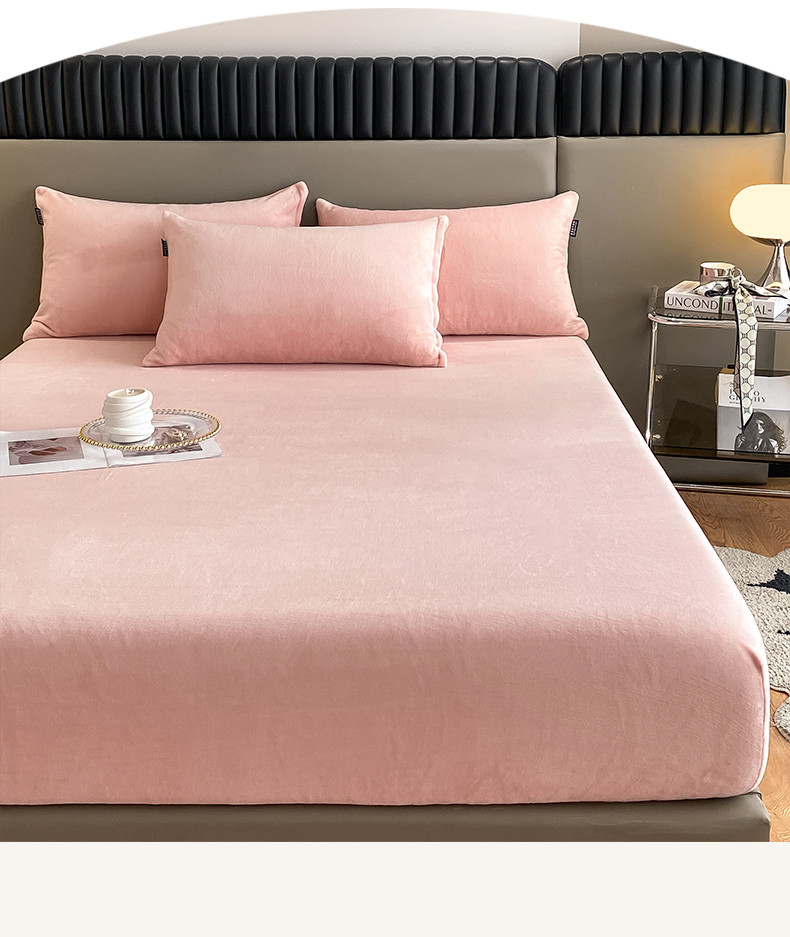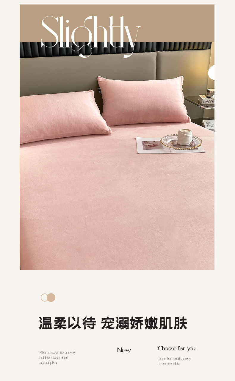 (总)神州川 2024新款高克重牛奶绒纯色单品床笠+枕套