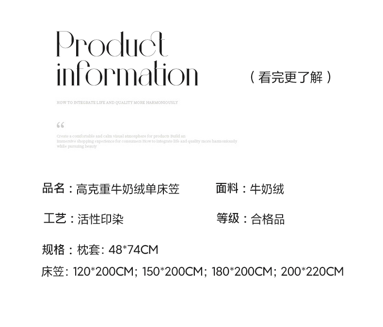 商品名称:(总)神州川 2024新款高克重牛奶绒纯色单品床笠+枕套