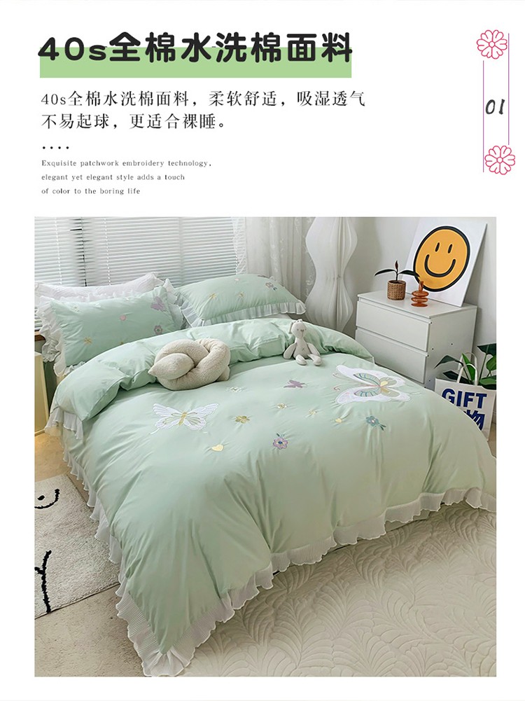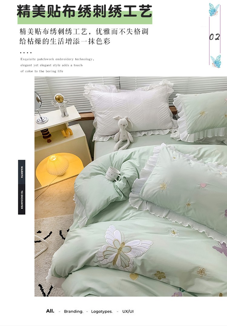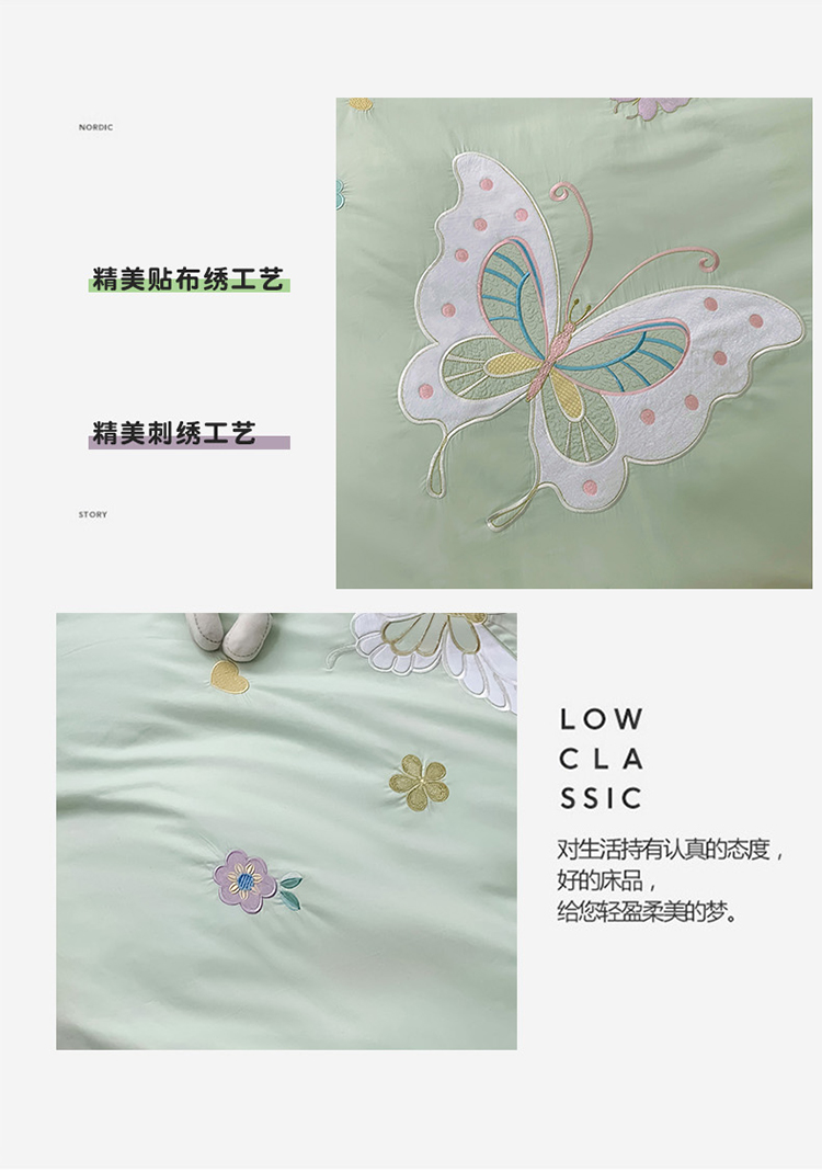 (总)2023新款A类母婴级全棉水洗棉绣花四件套--蝴蝶夫人系列棚拍图