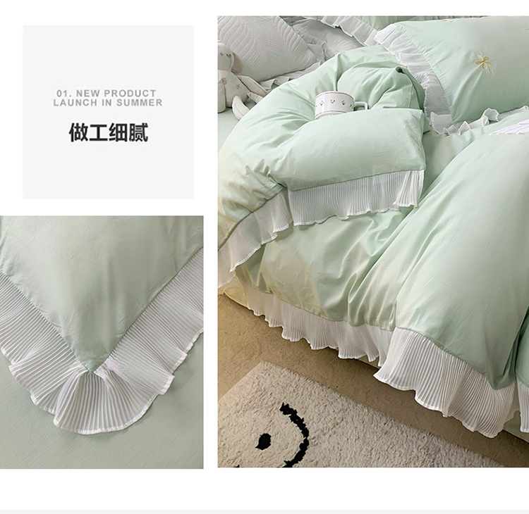 (总)2023新款韩版水溶花边牛奶绒四件套--安娜系列,安娜-布丁黄,安娜-清水绿,安娜-天空蓝,安娜-甜豆沙,安娜-仙女粉,安娜-香芋紫,安娜-星空灰
