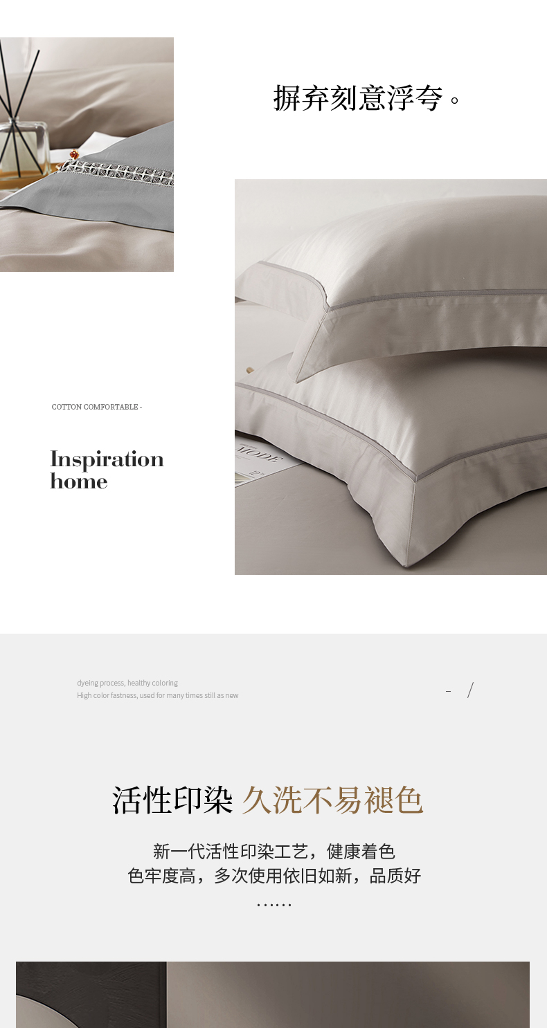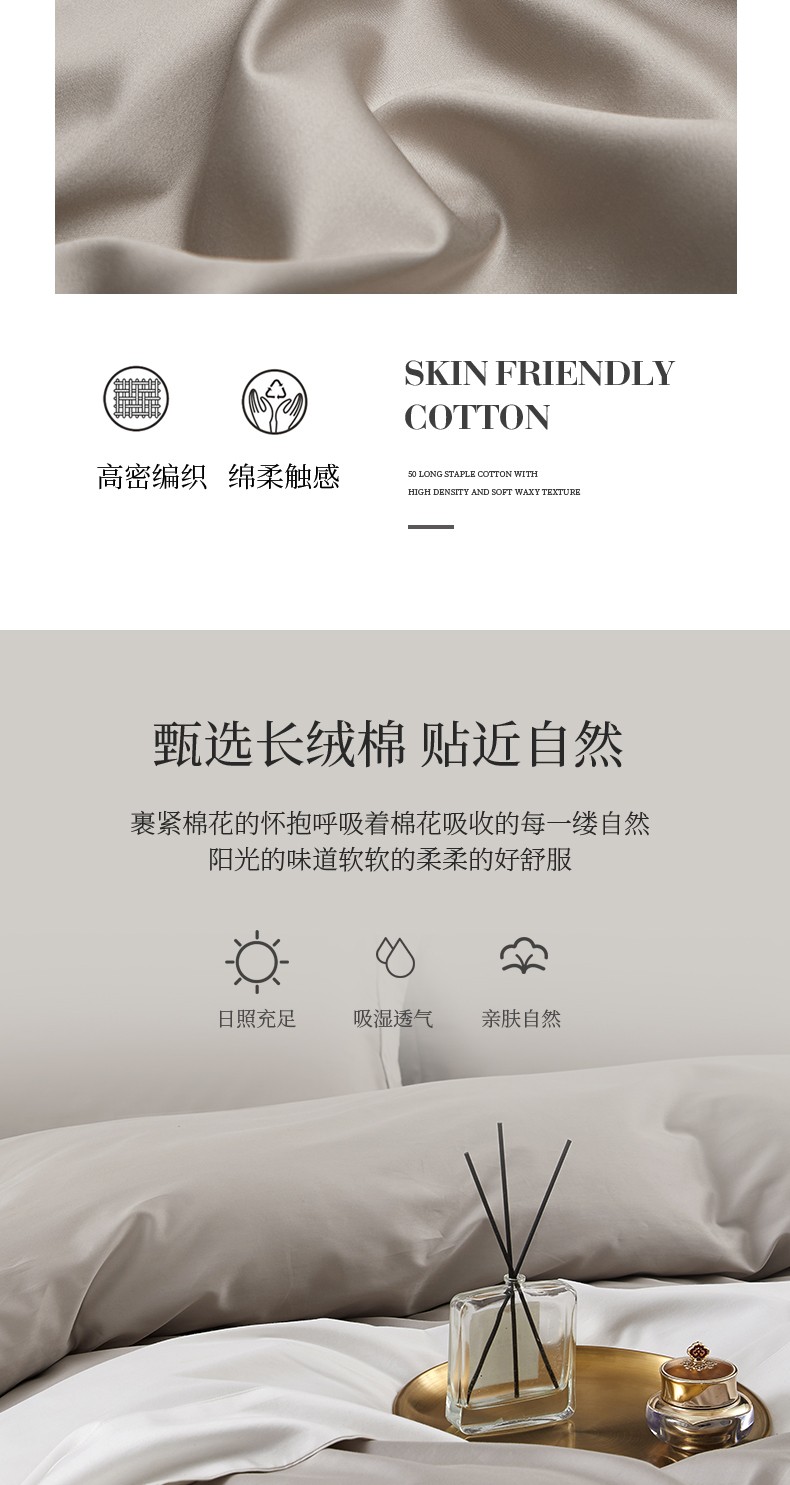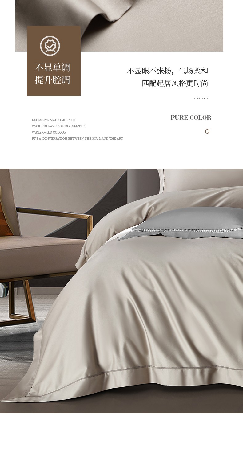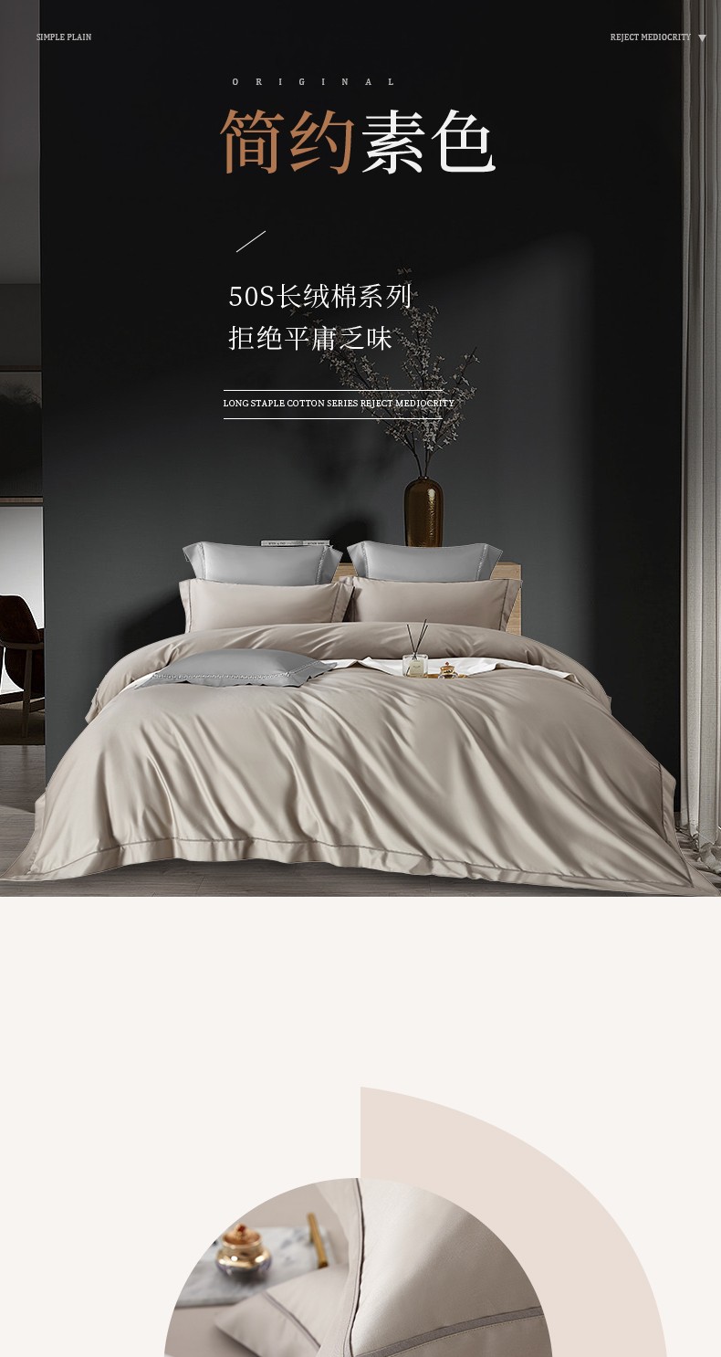 50支50S纯色长绒棉四件套可选七件套可定制直播爆款 纯朴