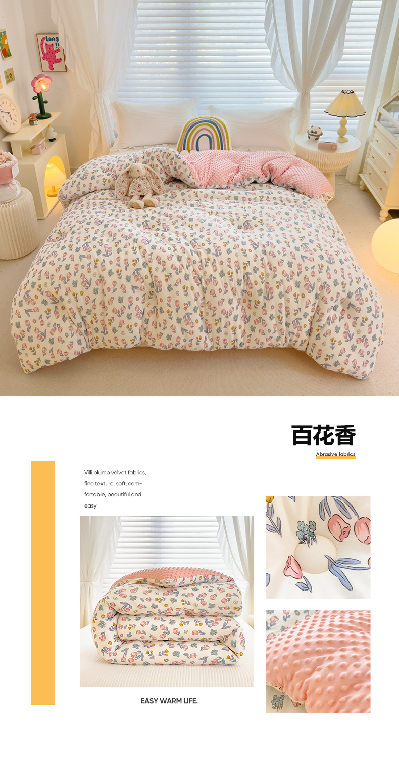 • 91家纺网 家纺一手货源 找家纺 米菲2023新款A类针织棉豆豆被冬被春秋被被芯被子 百花香