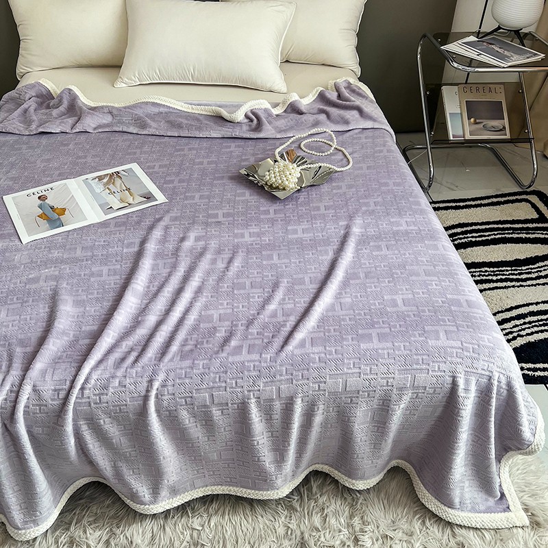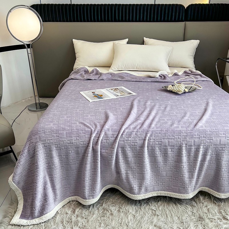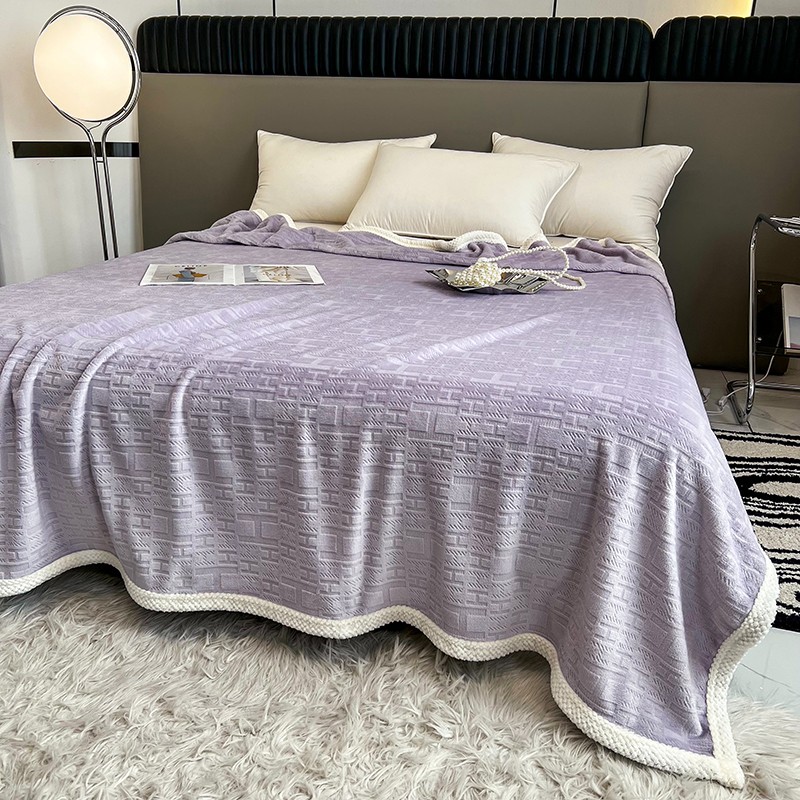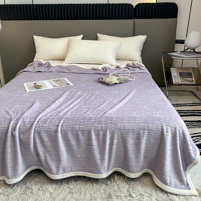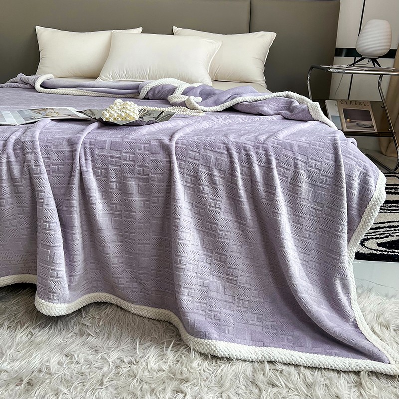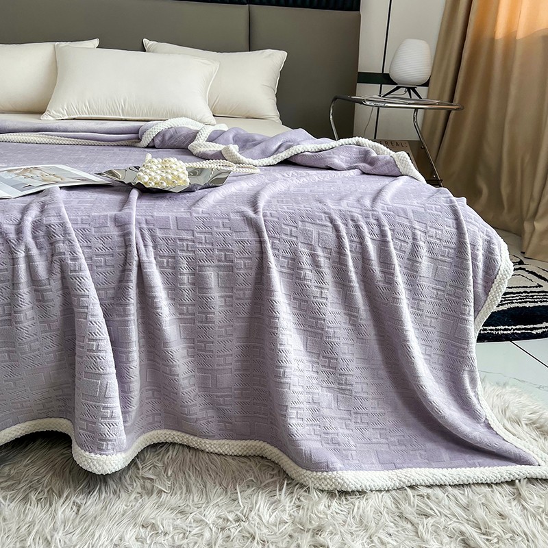 小米笠 2023新款立体剪花牛奶绒毯 冰川紫