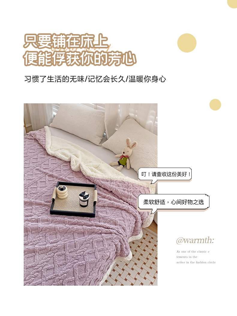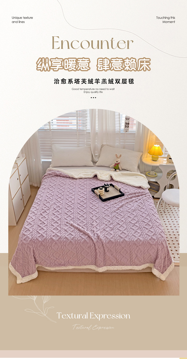 当前位置: 91家纺网 > 商品网购 > 毛毯休闲毯绒毯 > 毛毯 > 艾咪 新款230克加厚塔芙绒双层毯子羊羔绒毛毯 莫奈紫