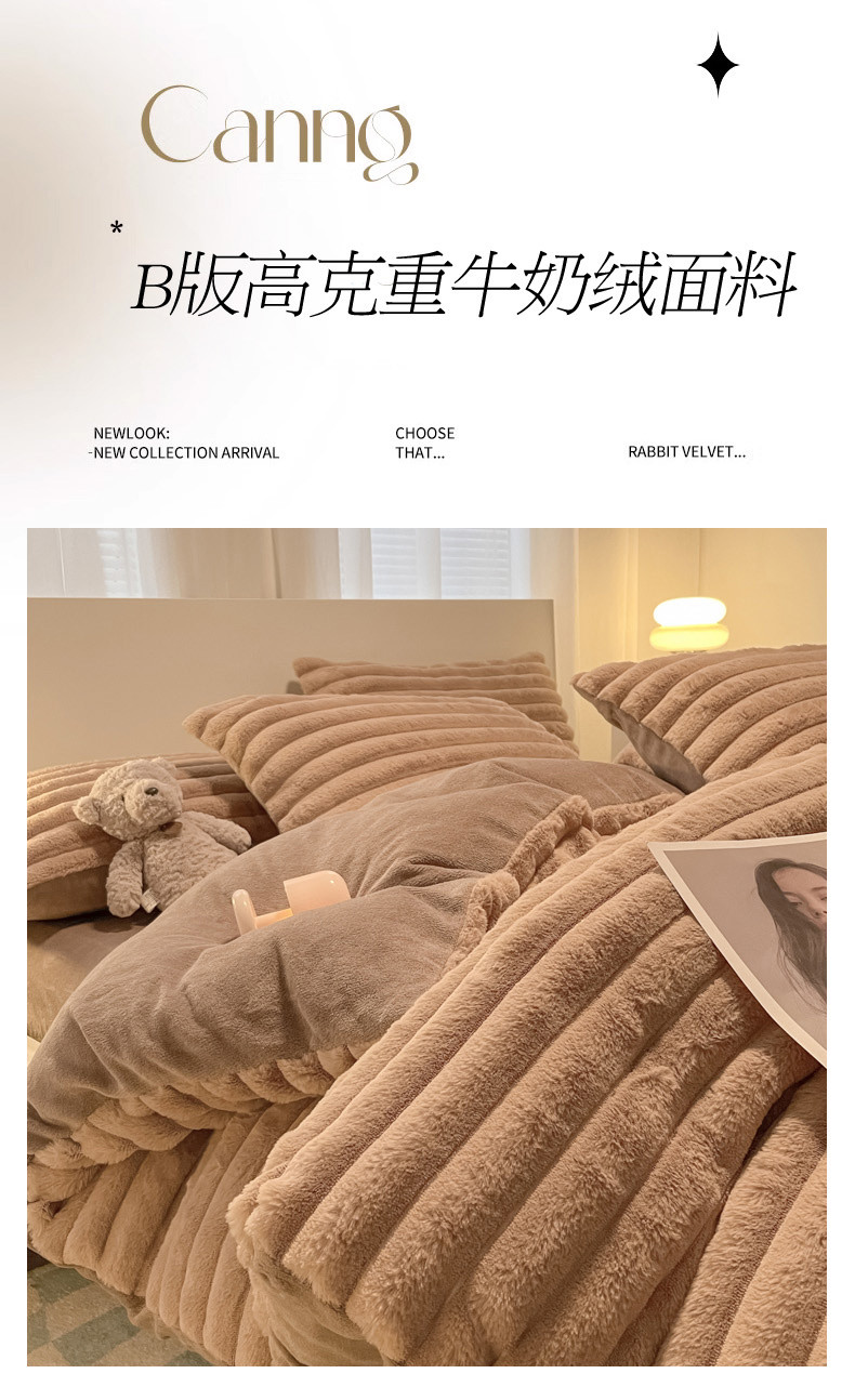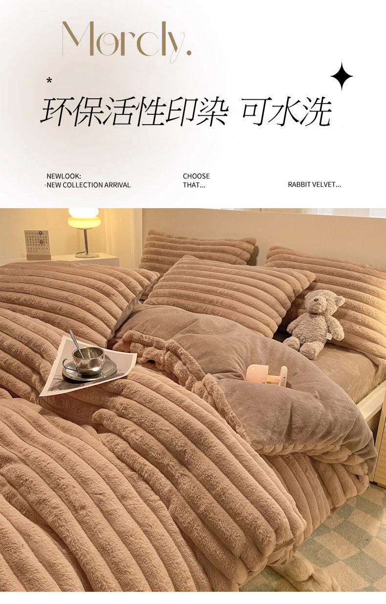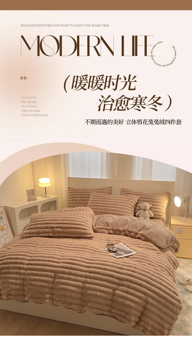 当前位置: 91家纺网 > 商品网购 > 床品套件 > 四件套 > 兔毛绒四件套 > 柒月家居 2023新款兔兔绒四件套 兔兔绒-驼