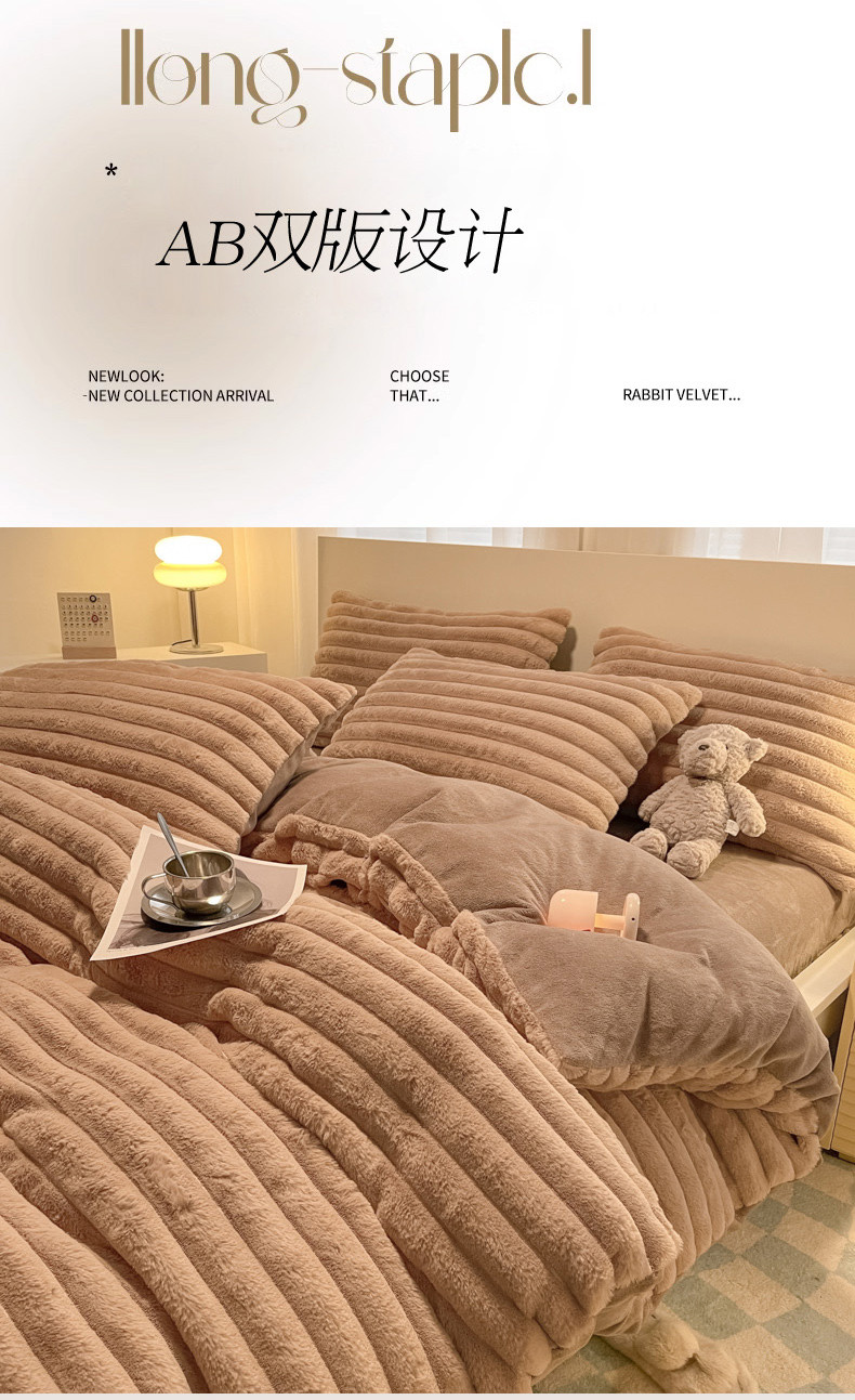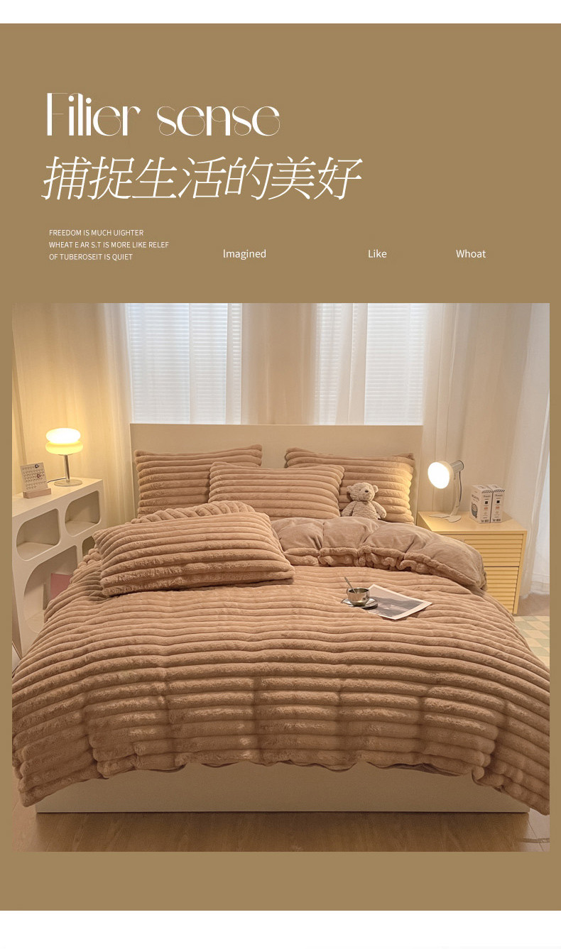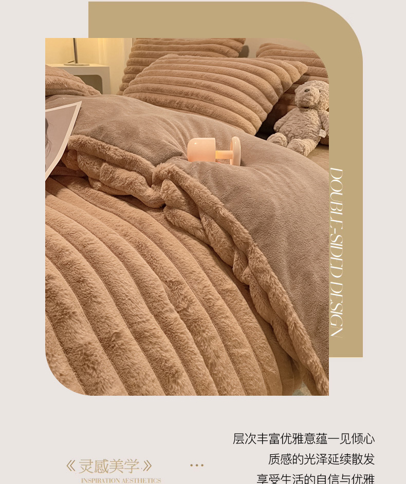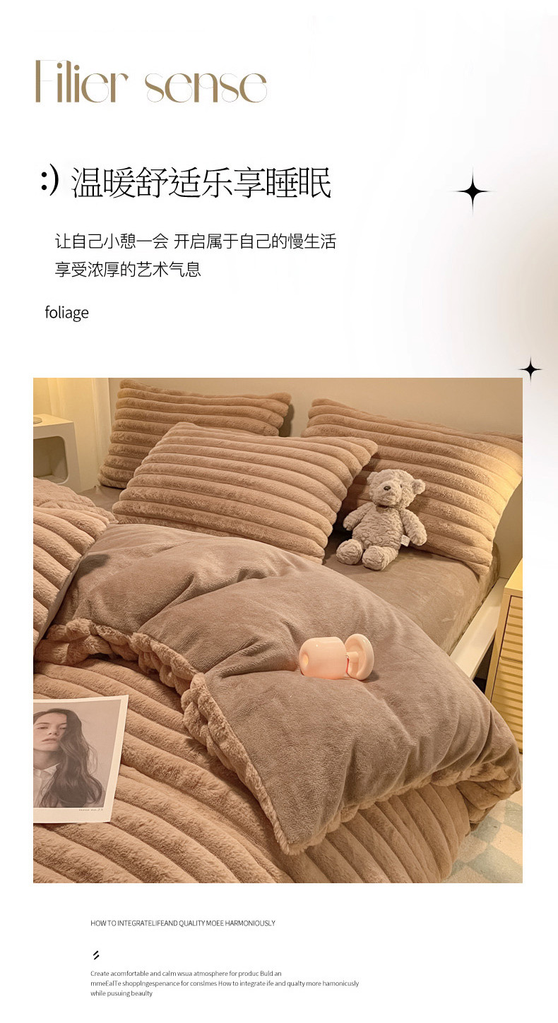 当前位置: 91家纺网 > 商品网购 > 床品套件 > 四件套 > 兔毛绒四件套 > 柒月家居 2023新款兔兔绒四件套 兔兔绒-驼