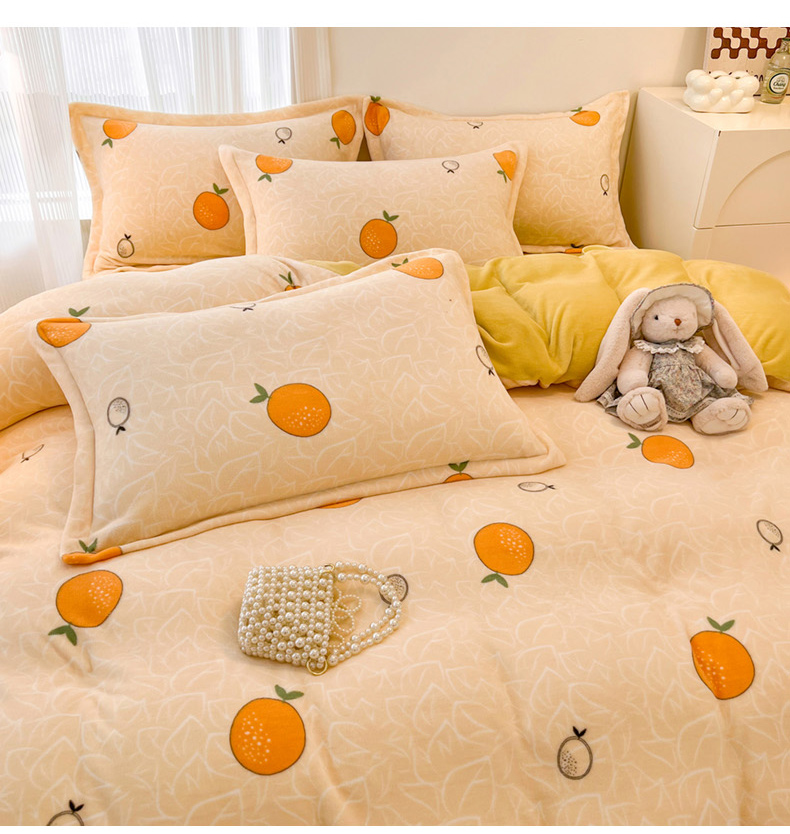 寐居家纺 2023新款小清新牛奶绒印花被套 果粒橘子