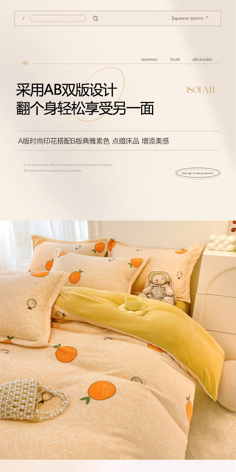 商品名称:寐居家纺 2023新款小清新牛奶绒印花被套 果粒橘子