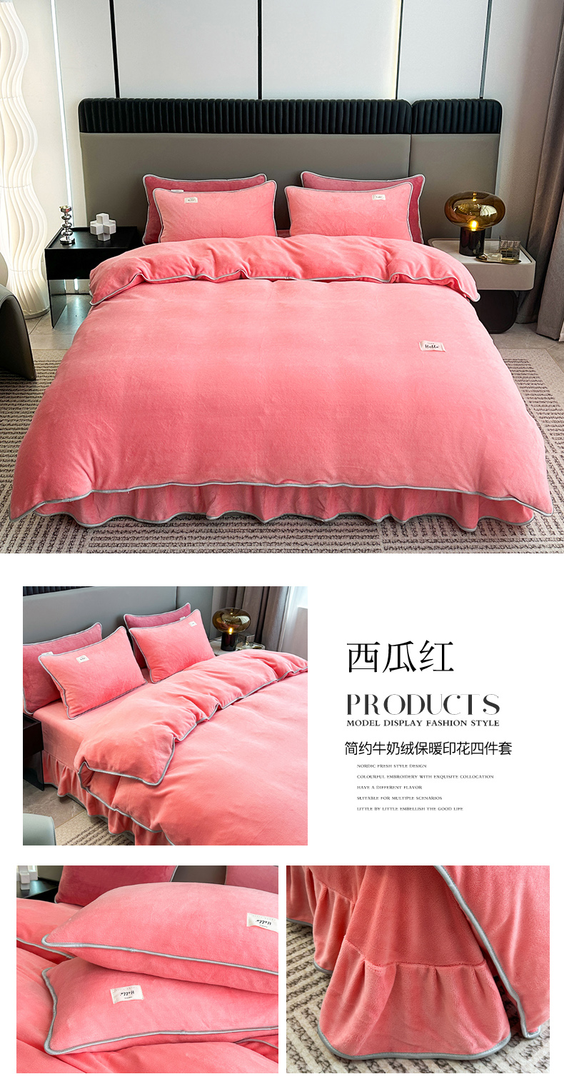 商品名称:(总)欧喜璐 2023新款高克重牛奶绒四件套法莱绒金貂绒8.5斤加厚保暖-纯色款
