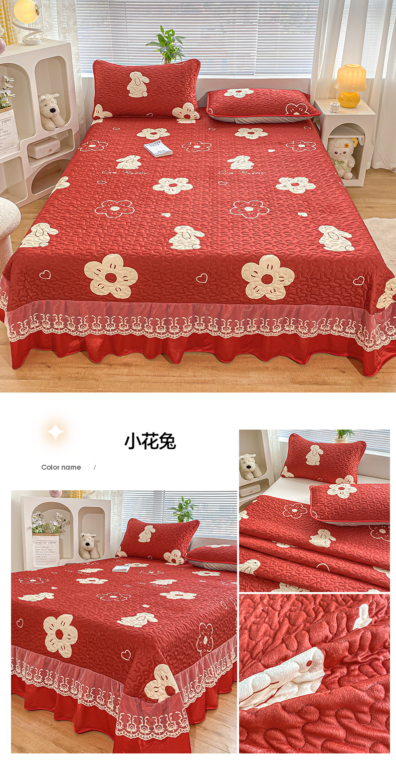 • 91家纺网 家纺一手货源 找家纺 同田家纺 2023新款牛奶绒韩系花边床盖系列 小花兔