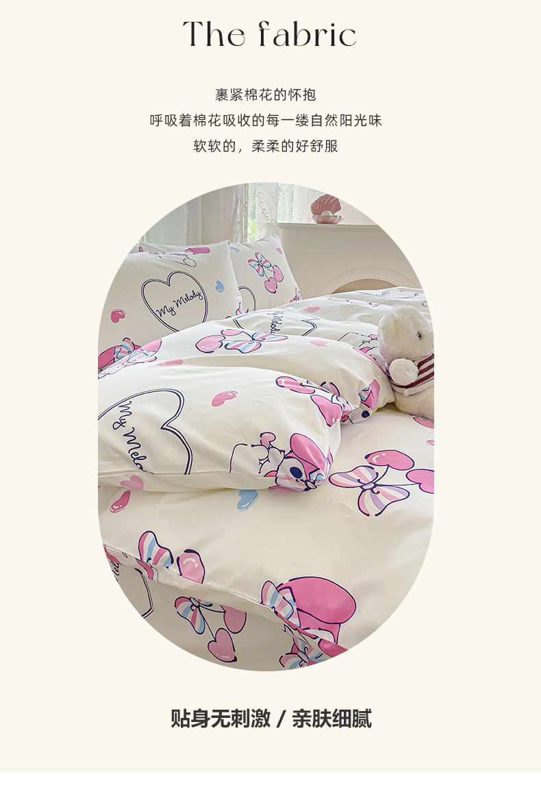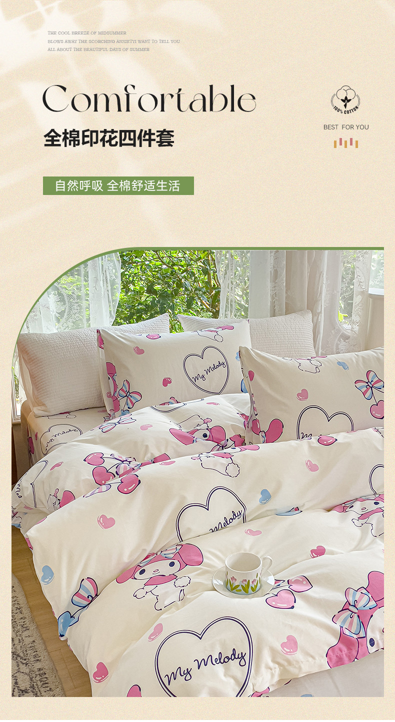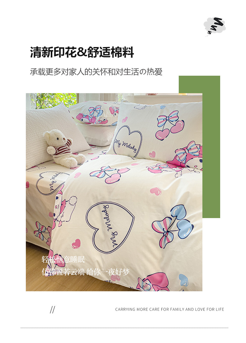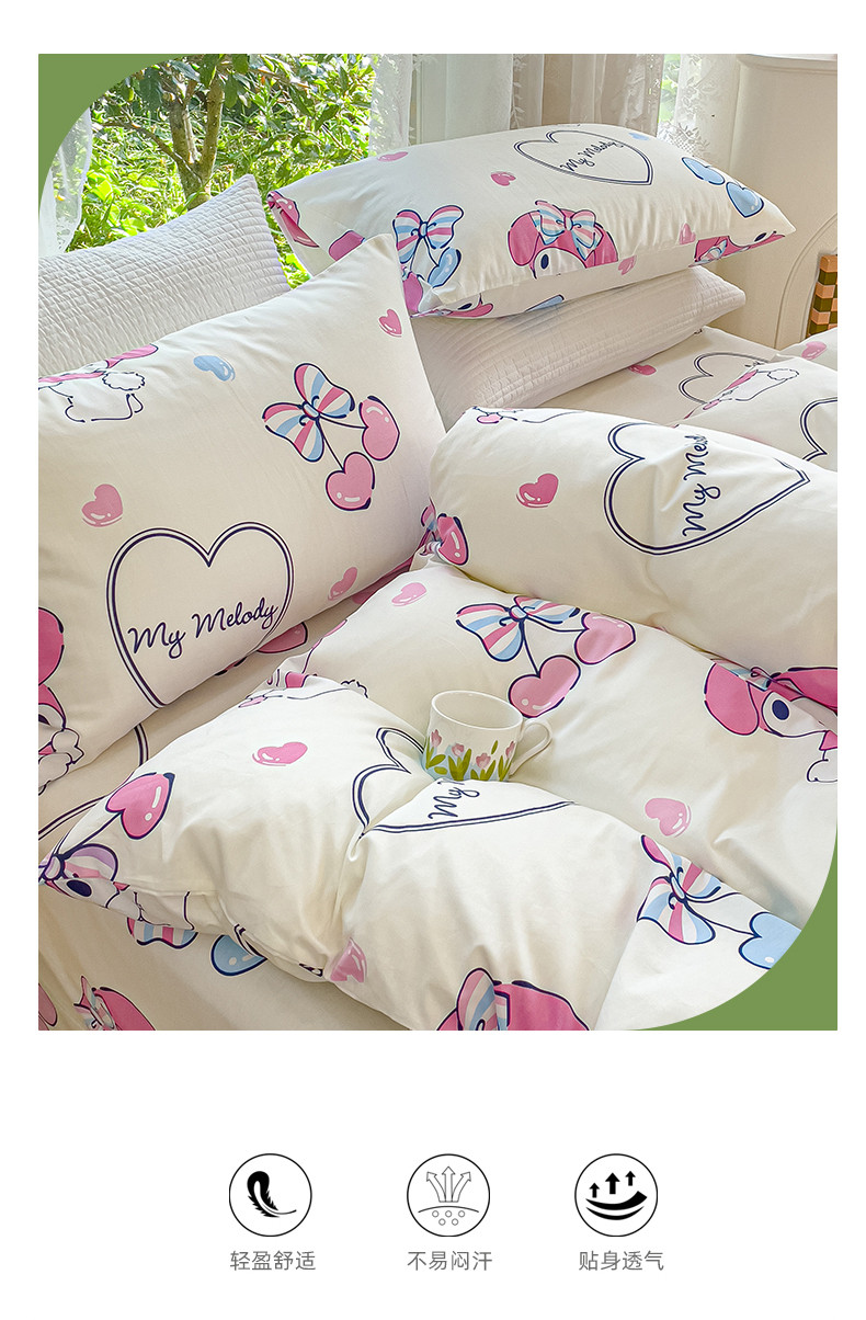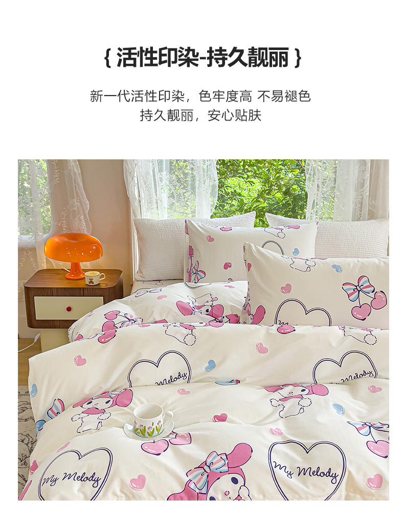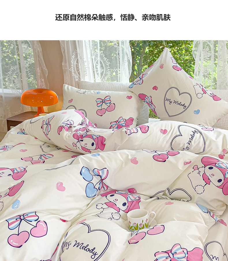 当前位置: 91家纺网 > 商品网购 > 床品套件 > 四件套 > 全棉普通四件套 > 感遇 2023新款三丽鸥卡通四件套桃心美乐蒂
