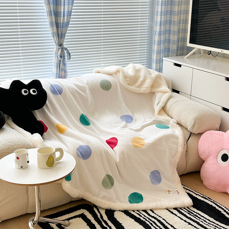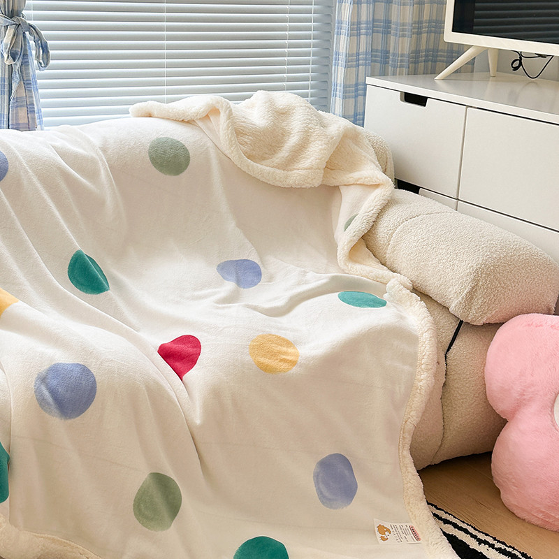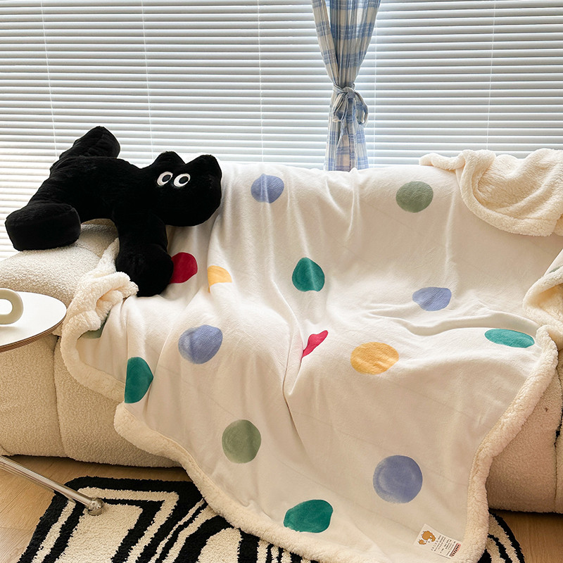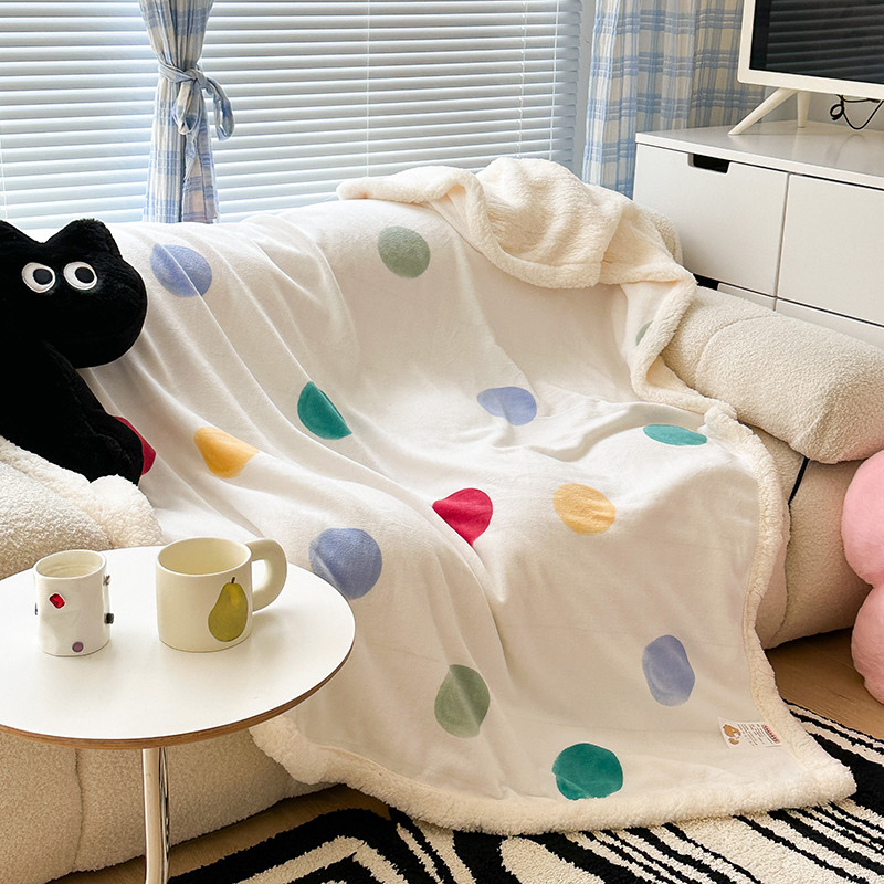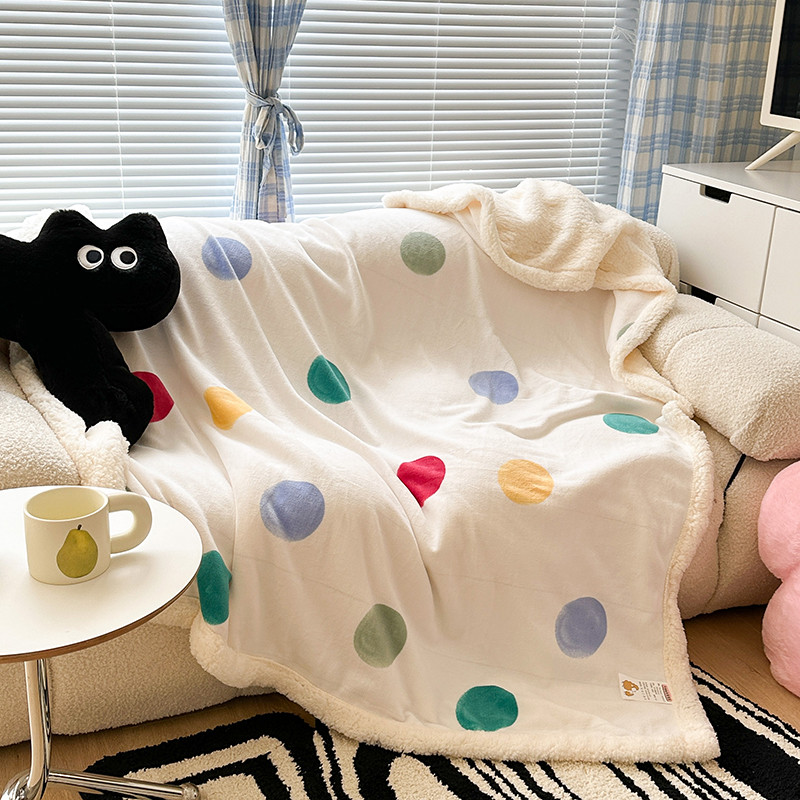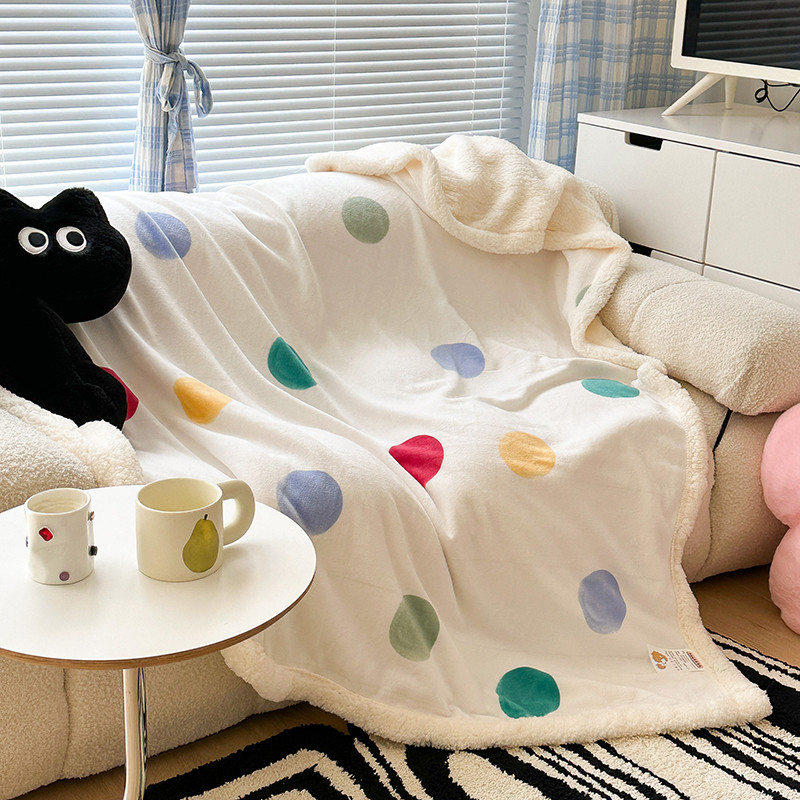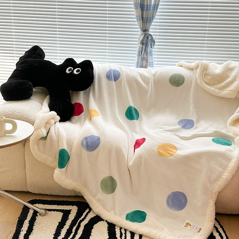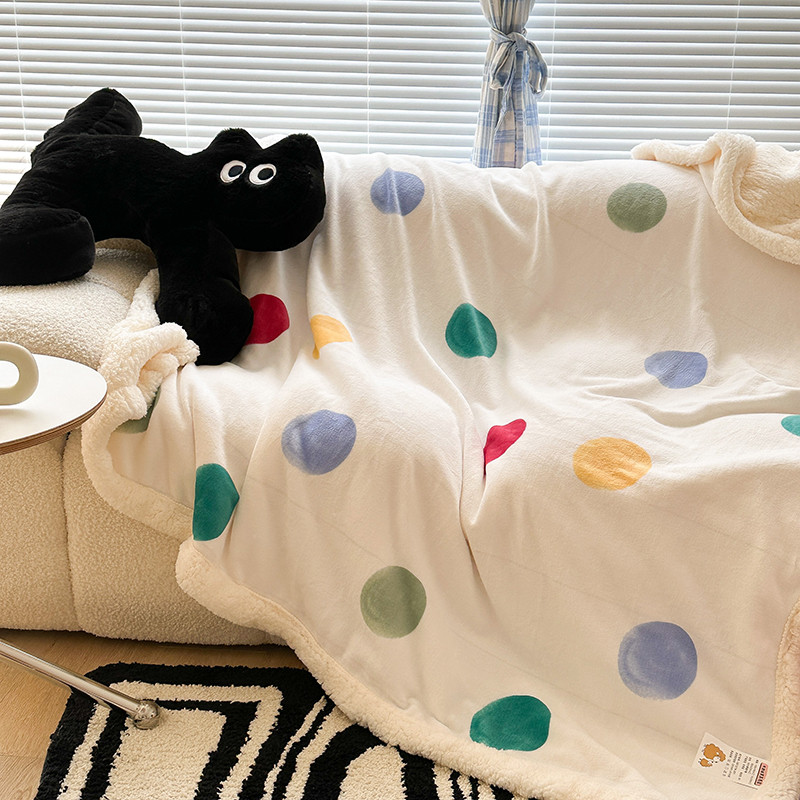 昔可家纺 2023新款ins风牛奶绒羊羔绒印花毛毯(风格二)彩色波点