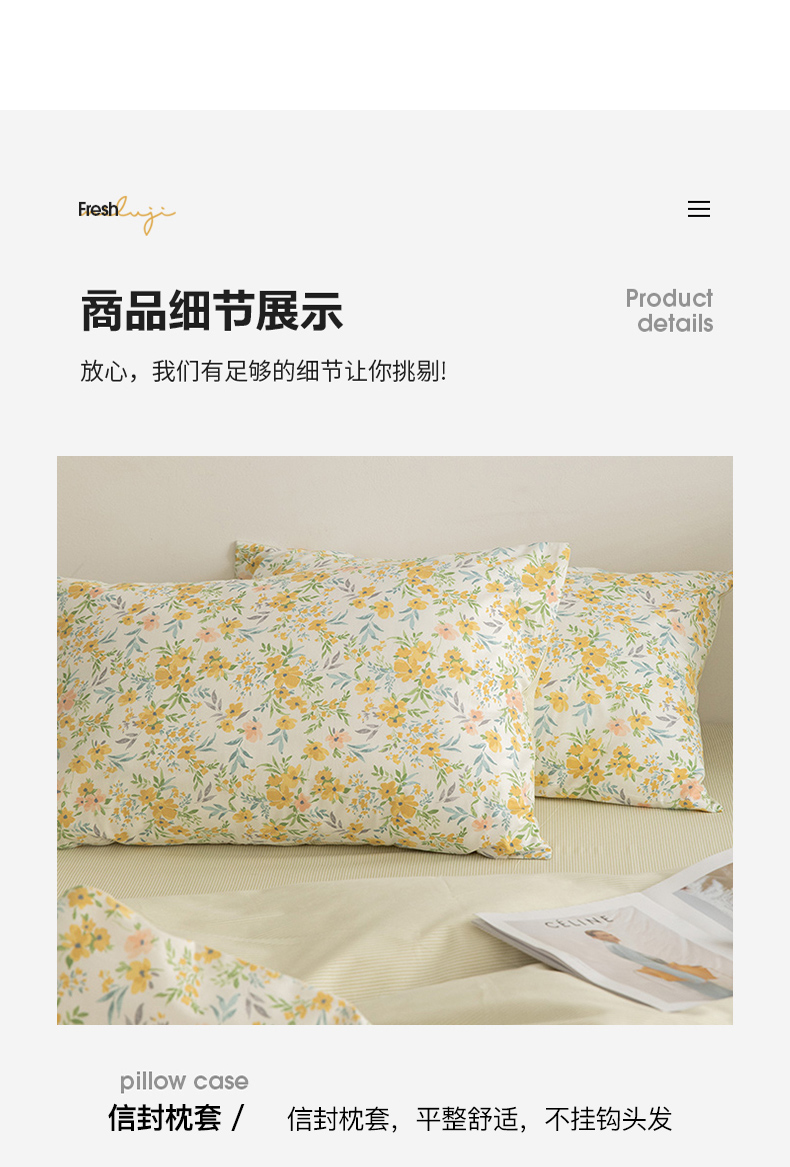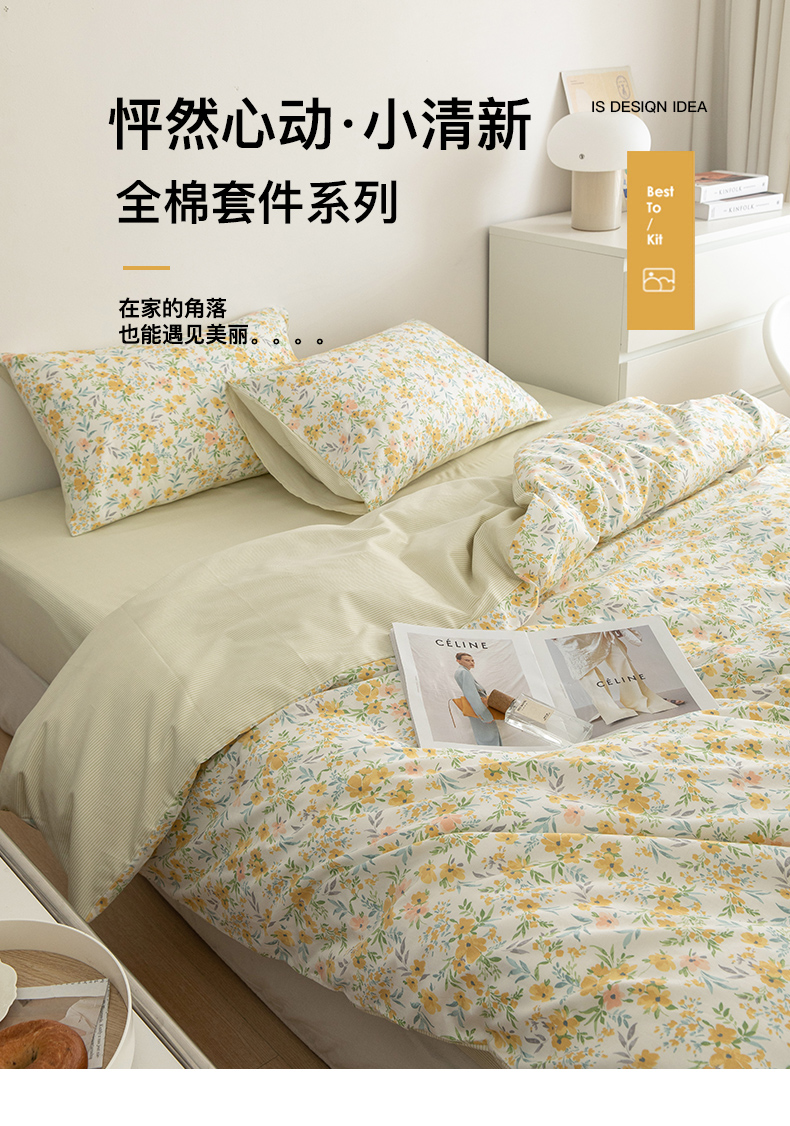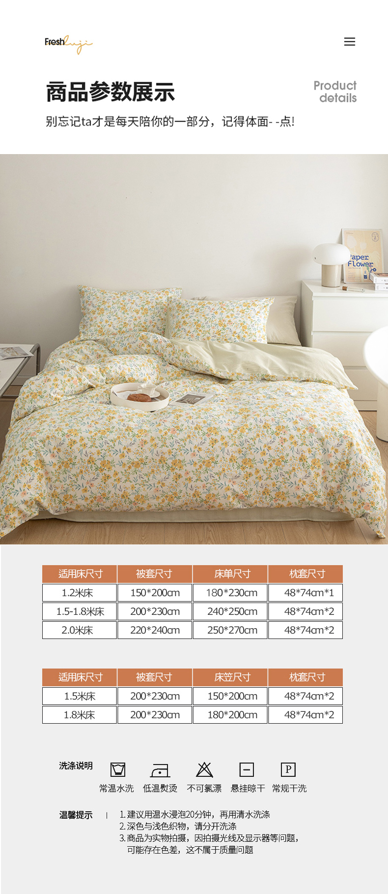商品名称:绫韵家纺 13372ins风全棉斜纹纯棉小清新床上四件套三件套 多姿多彩黄