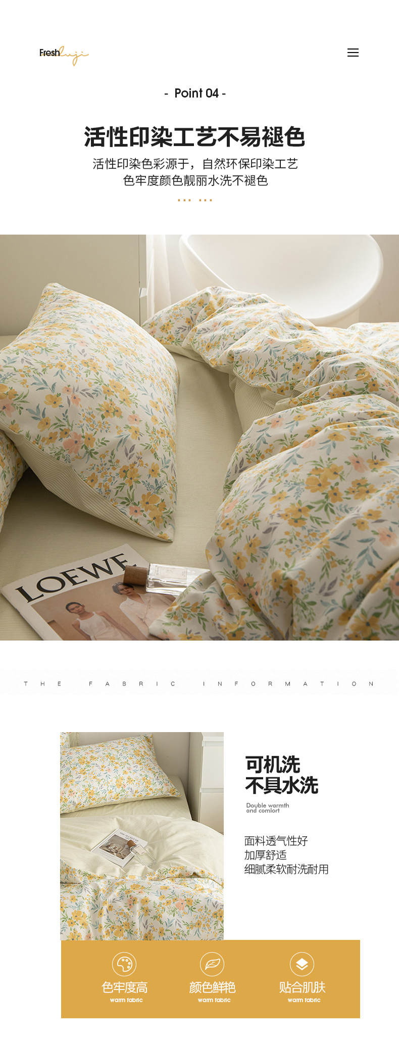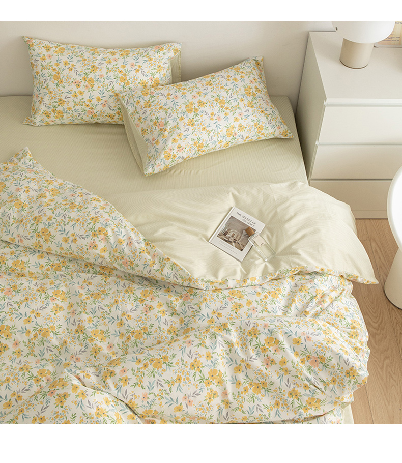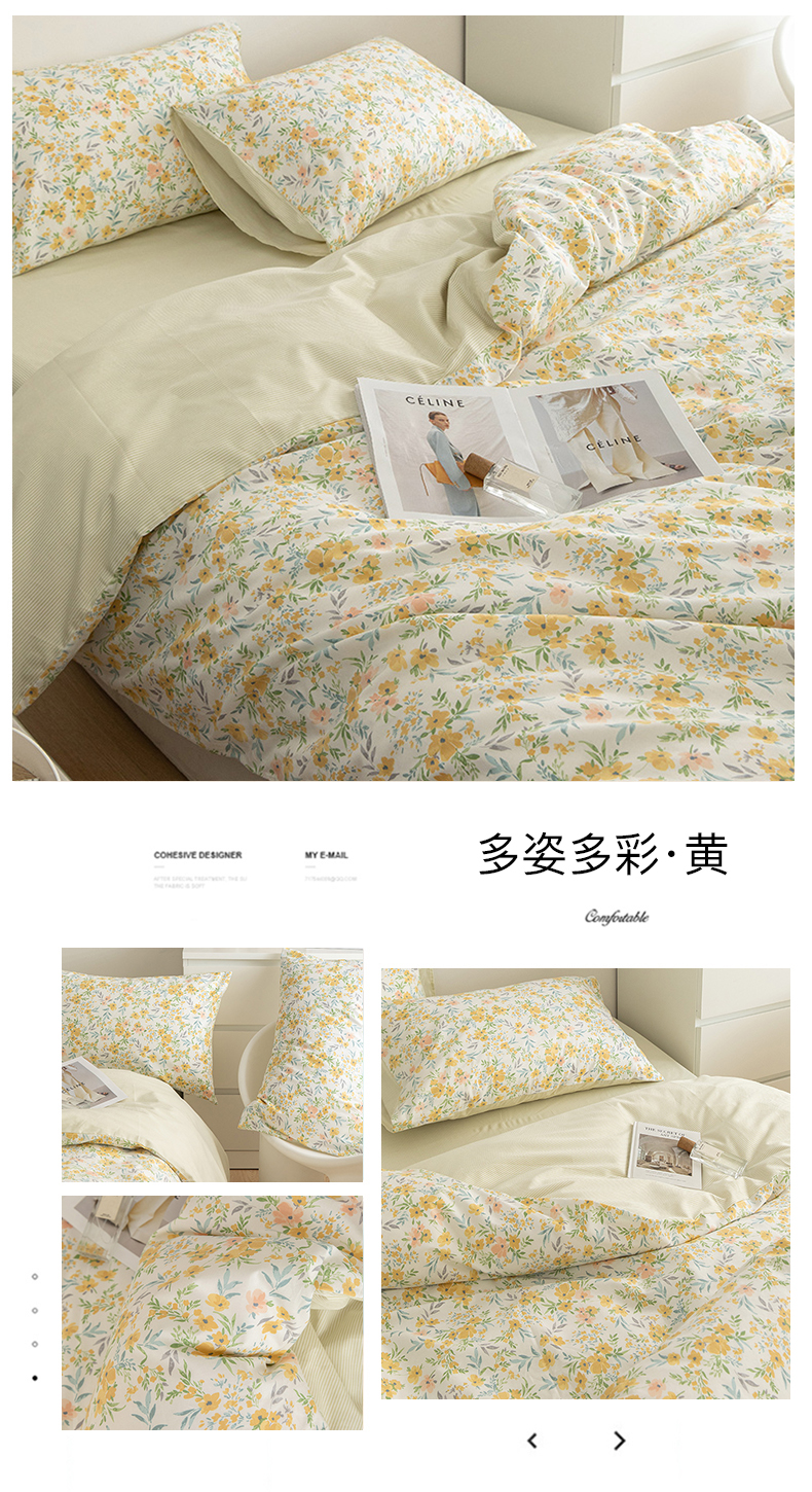 绫韵家纺 13372ins风全棉斜纹纯棉小清新床上四件套三件套 多姿多彩黄
