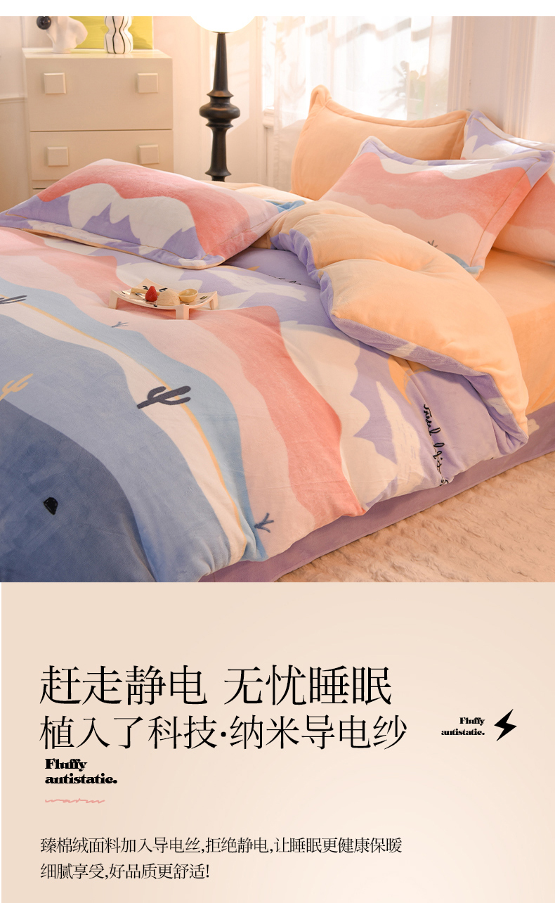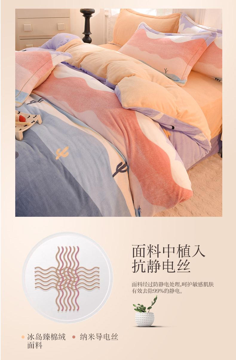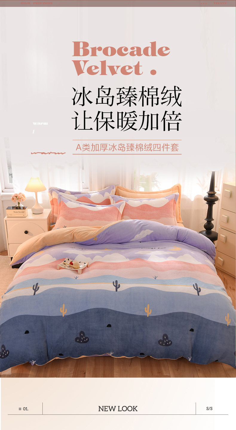 2025新款冰岛臻棉绒印花系列牛奶绒小号三件套 蜜儿