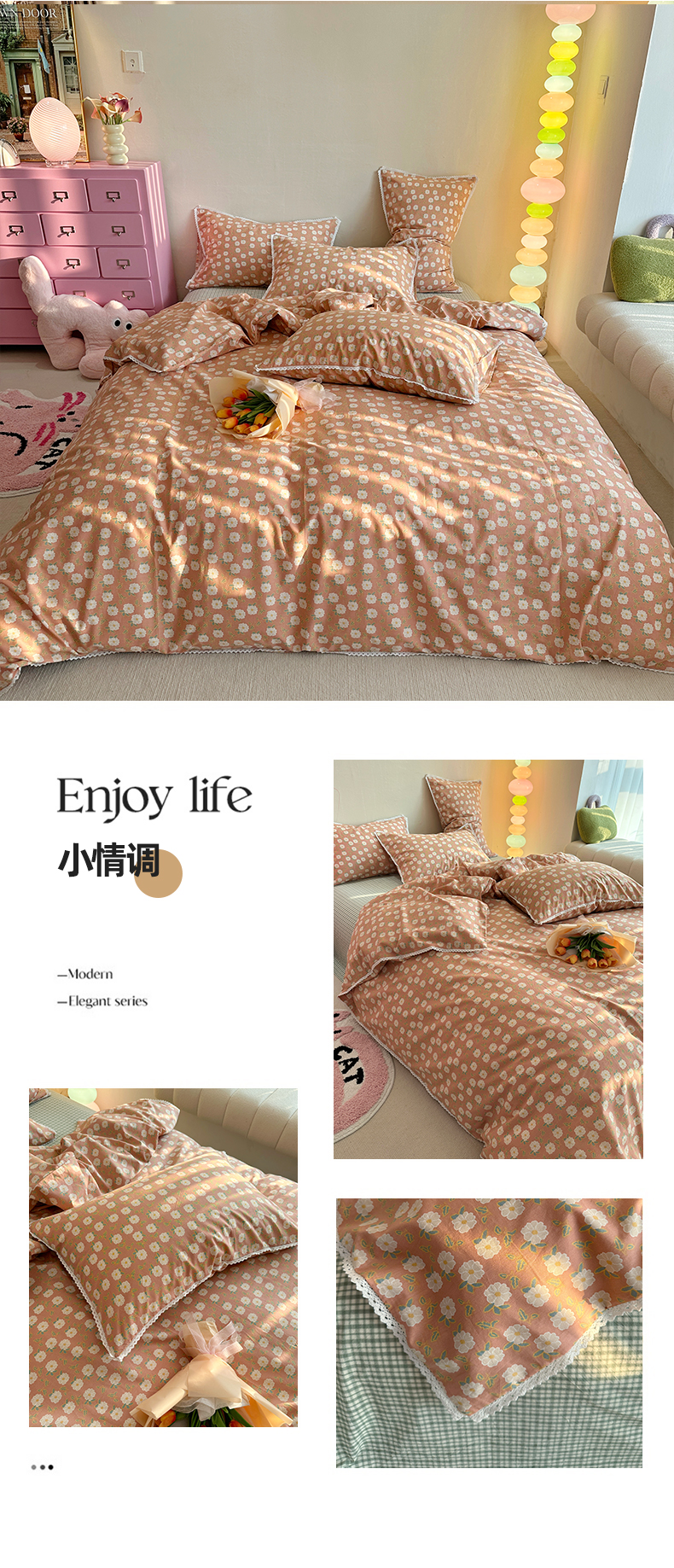 商品名称:千朵 2023新款全棉水洗带边四件套 小情调