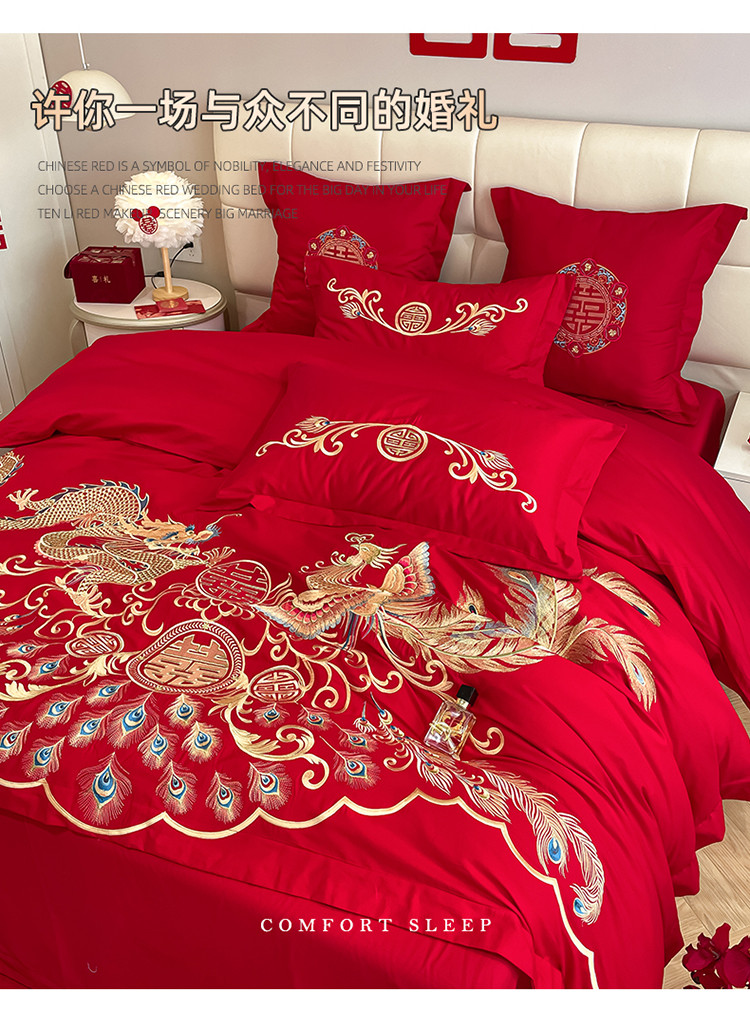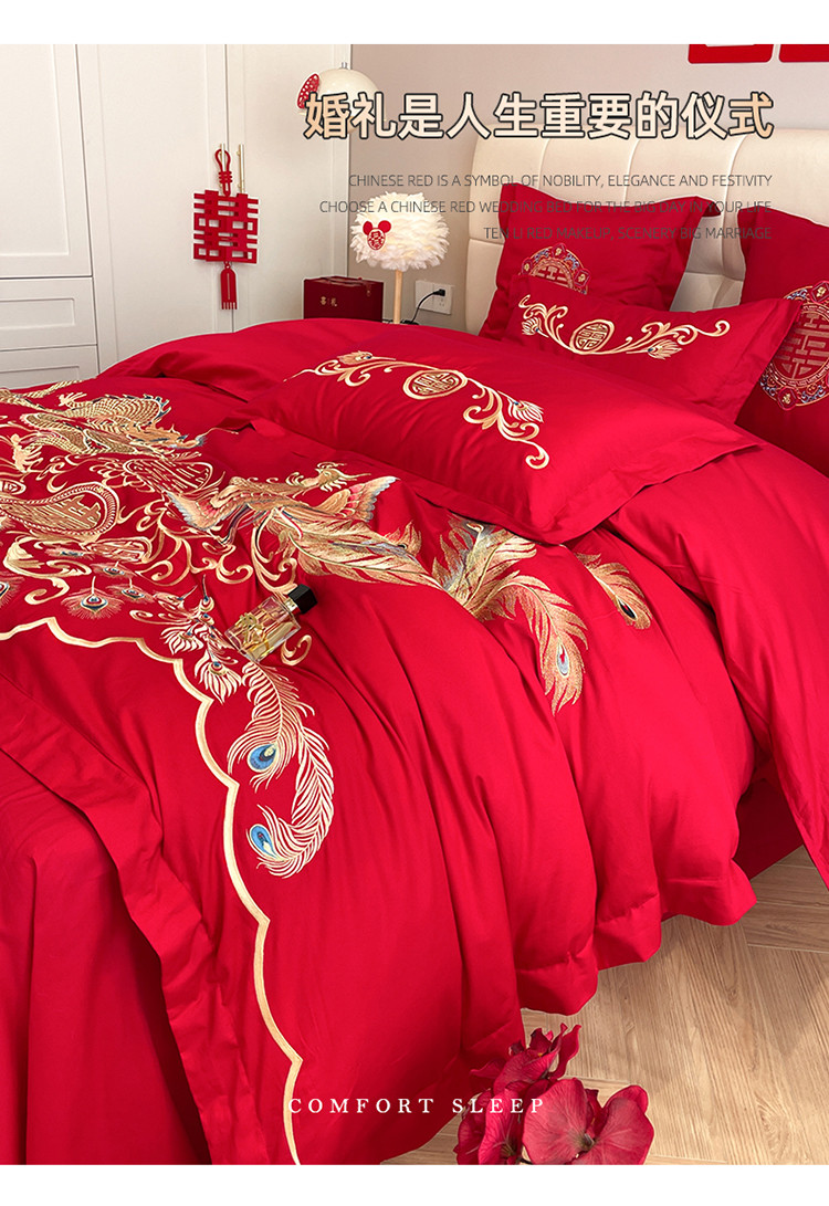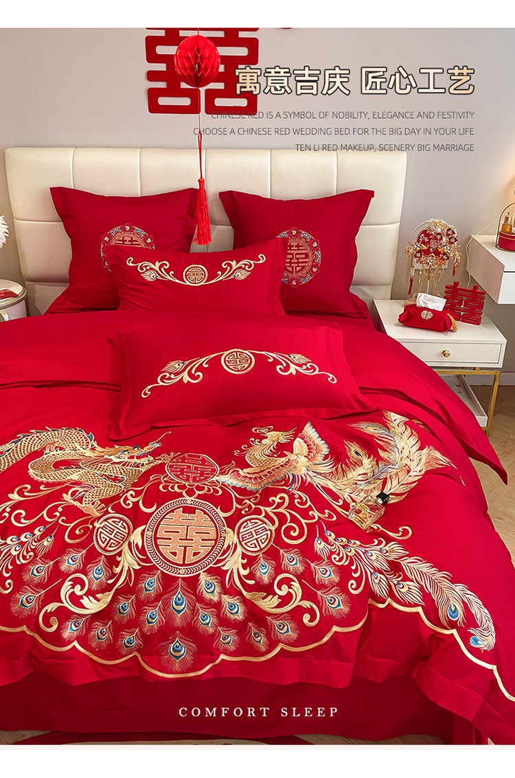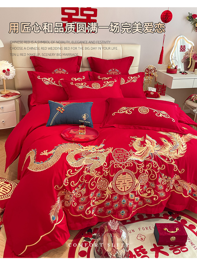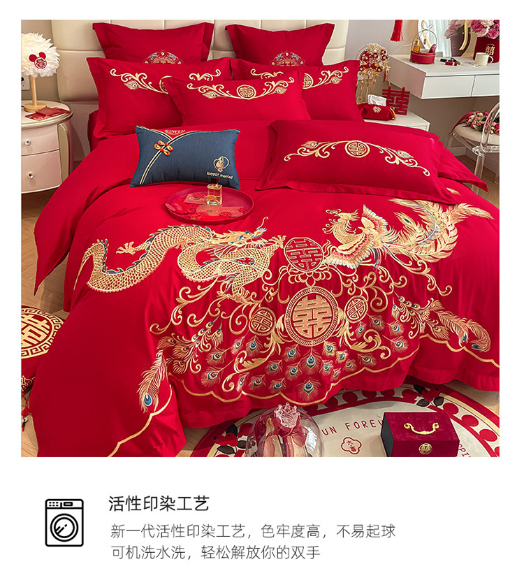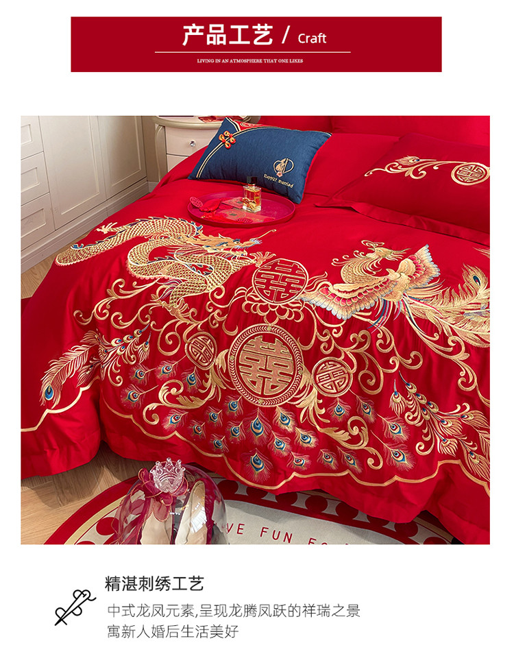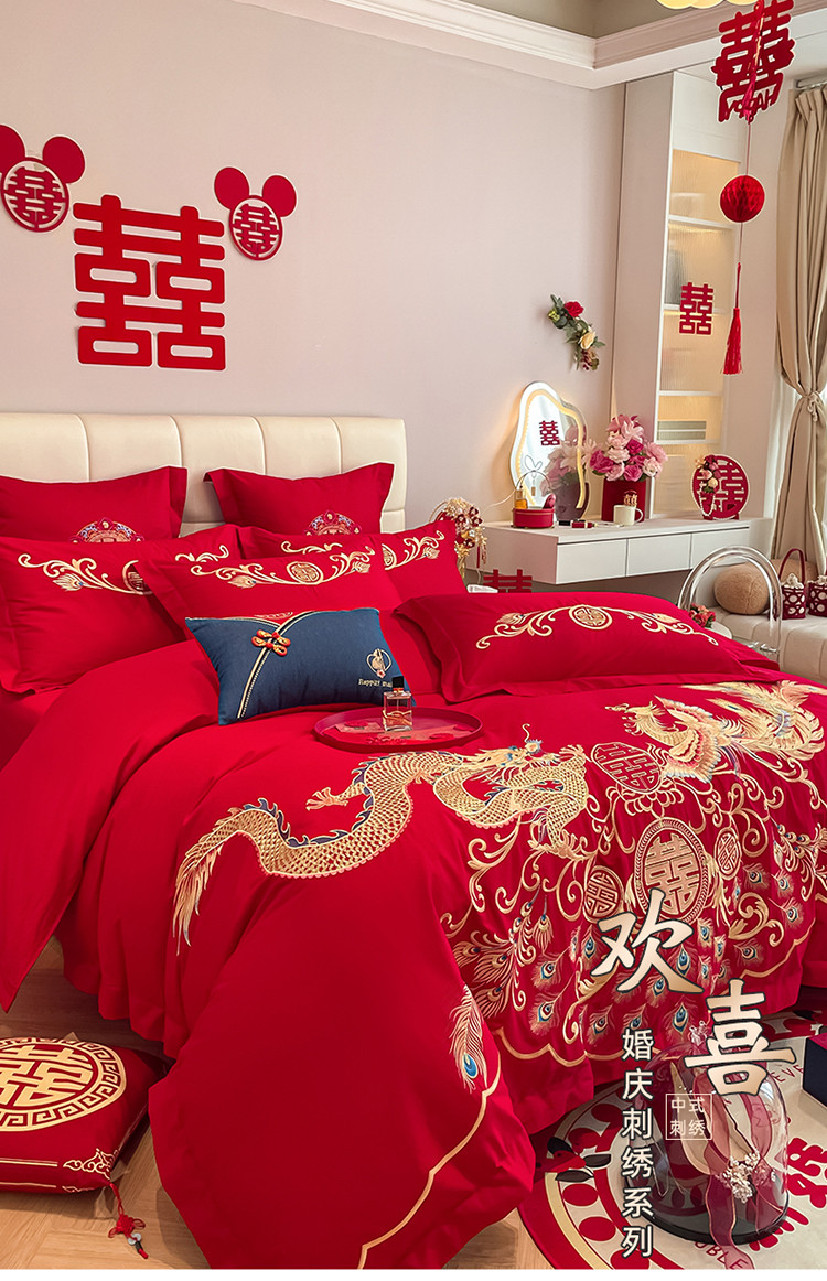 当前位置: 91家纺网 > 商品网购 > 床品套件 > 四件套 > 婚庆四件套 > 玉雅家纺 2025新款亲肤刺绣婚庆四件套龙腾凤舞