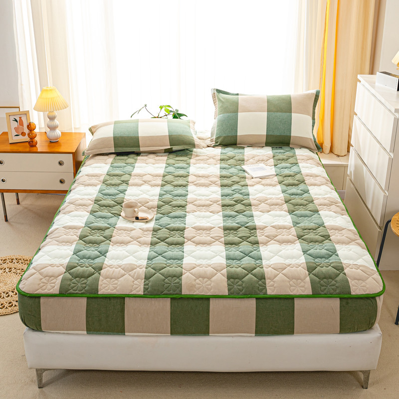 商品名称:米柳 2024新款亲肤夹棉印花床笠 黛绿品格