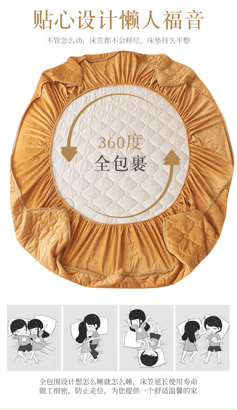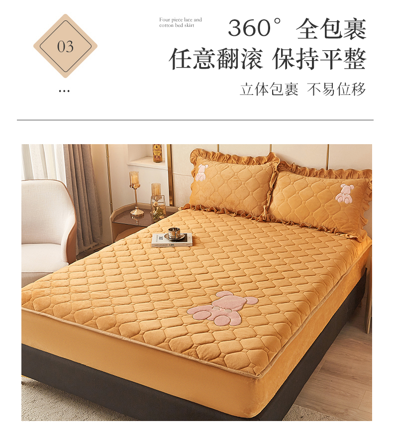 屹成 2024新款亲肤水晶绒夹棉单床笠-小熊款 金驼