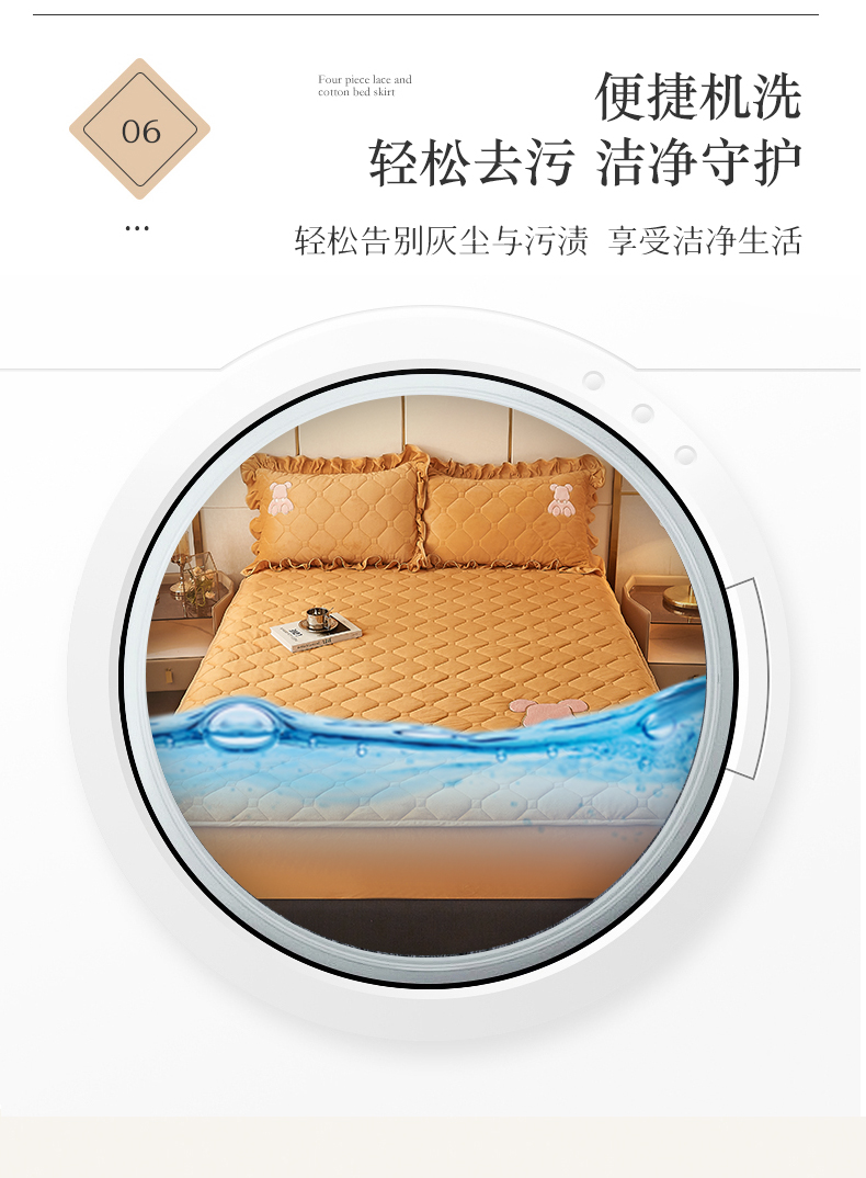 (总)屹成 2024新款水洗棉蕾丝四季款床笠床裙单品套件-床裙三件套,粉玉,豆沙,粉红,大红,橄榄绿,卡其,玫红,浅紫,水绿,天蓝,银灰
