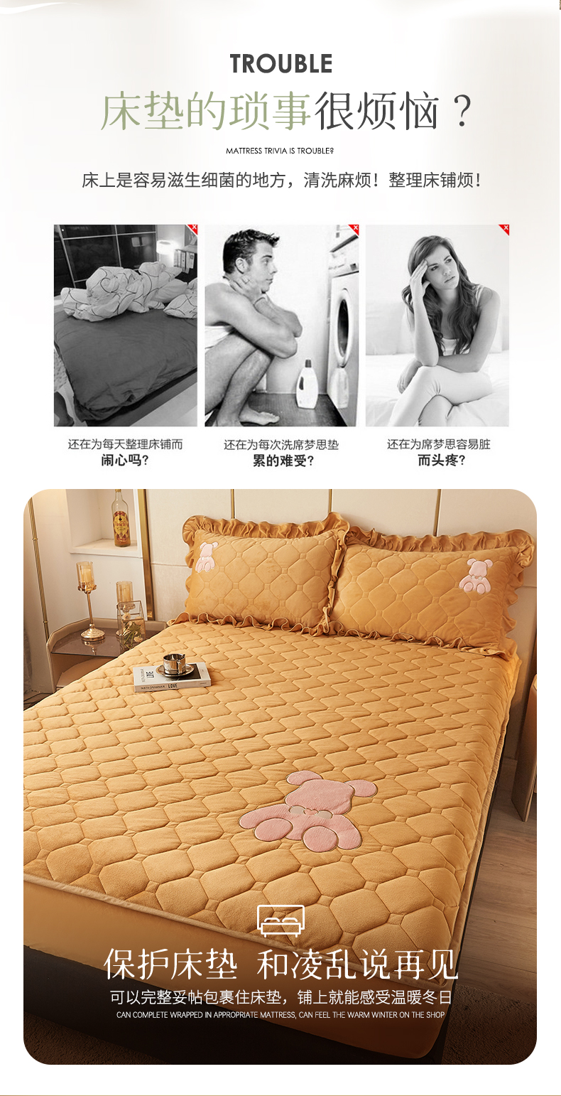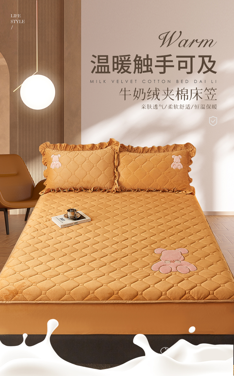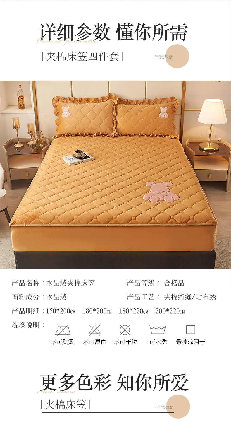 商品名称:屹成 2024新款亲肤水晶绒夹棉单床笠-小熊款 金驼
