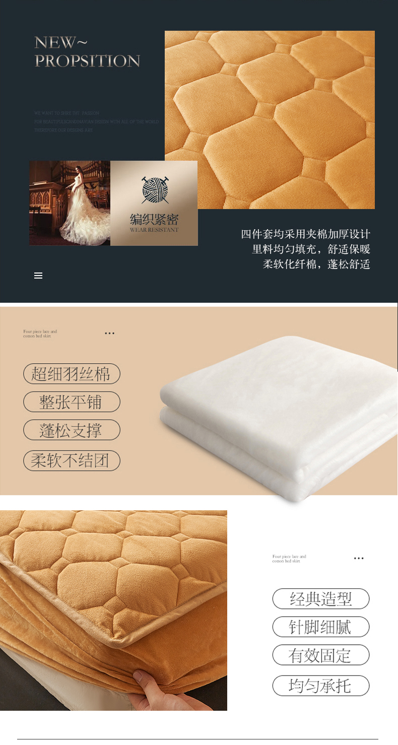 (总)屹成家纺2025新款水晶绒夹棉绗缝床裙四件套(塞纳河畔)四件套起售价不低于230元,大红,豆沙,翡翠绿,粉玉,橄榄绿,蔚蓝,银灰
