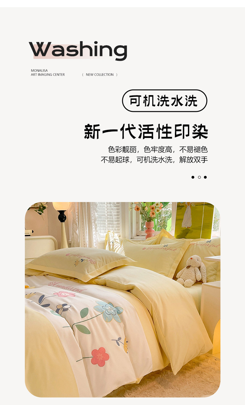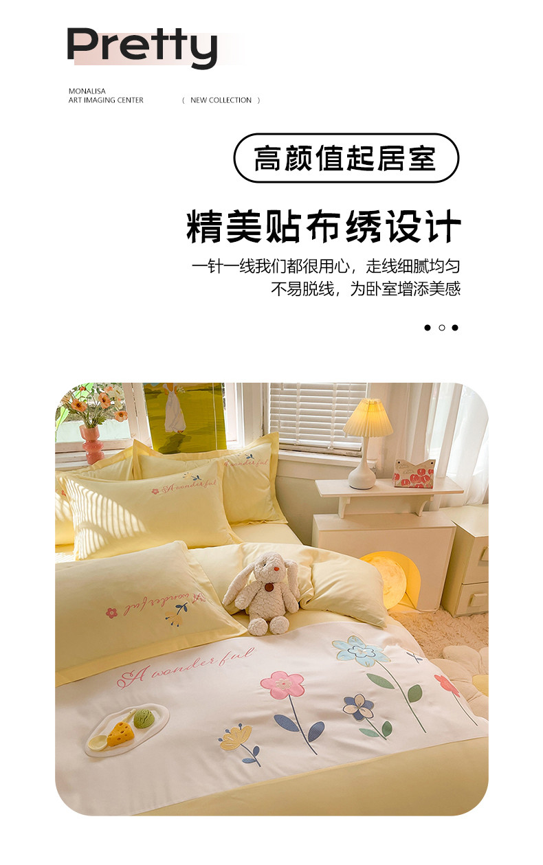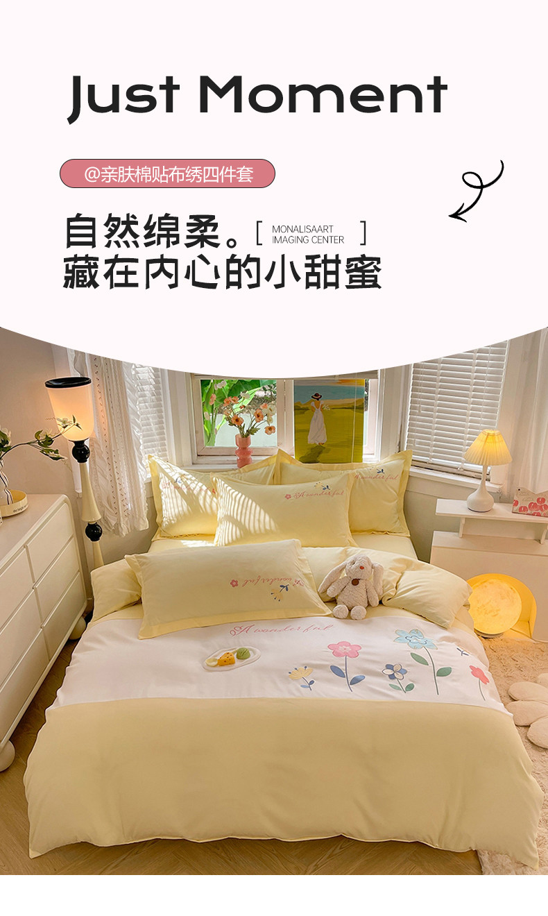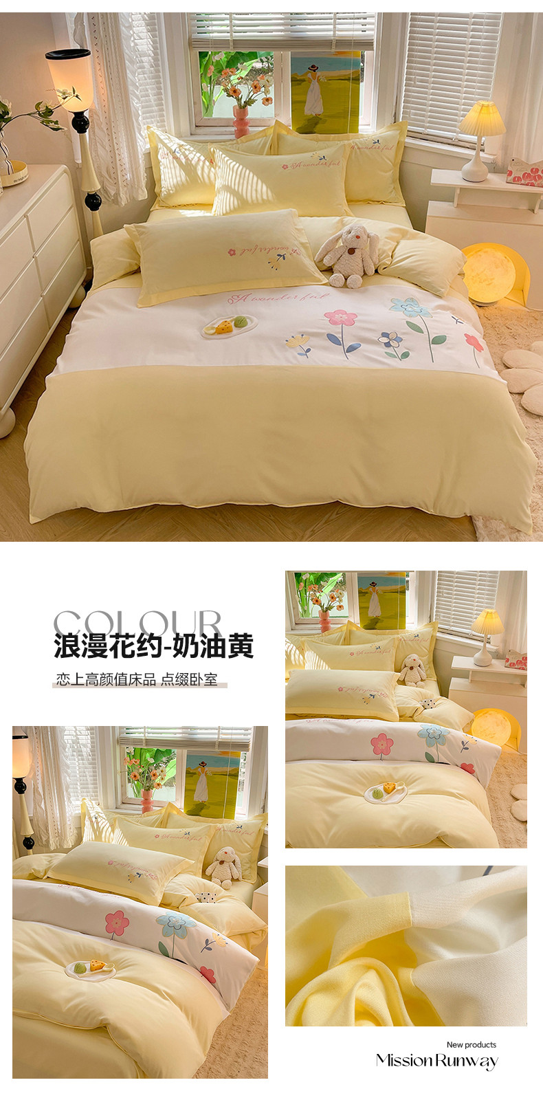 当前位置: 91家纺网 > 商品网购 > 床品套件 > 四件套 > 普通磨毛四件套 > 易辰美 新款水洗磨毛亲肤棉贴布绣花四件套-浪漫花约 浪漫花约-奶油黄