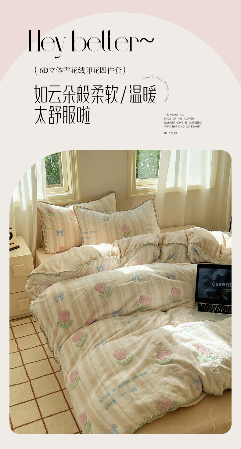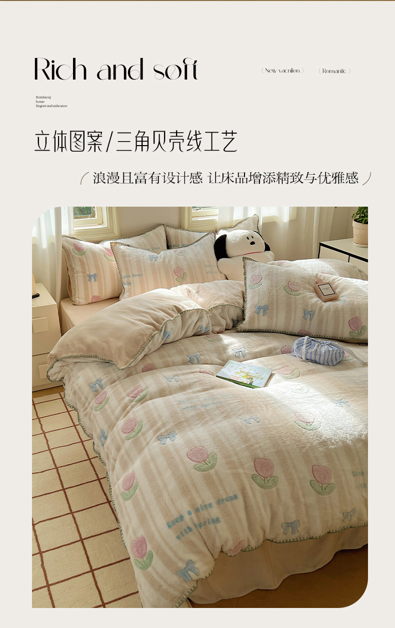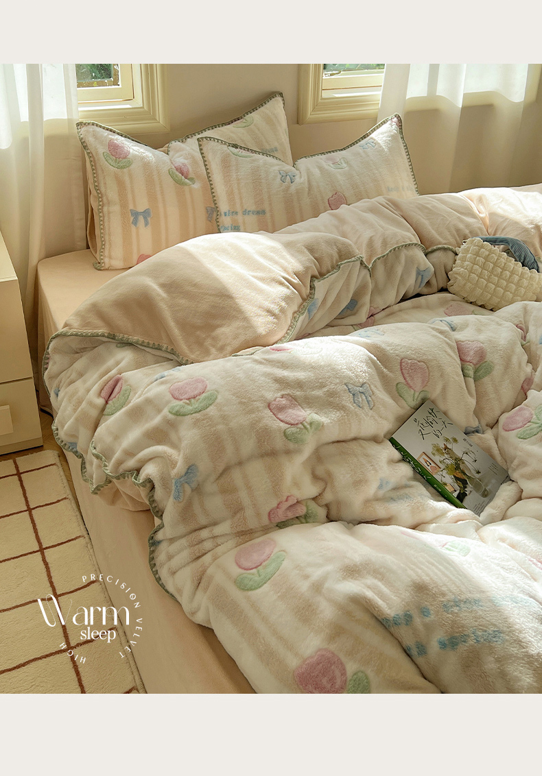 (总)三朵家纺 2024新款3D立体浮雕花边保暖加厚四件套,馥郁芳芬,花园小径粉,花园小径黄,绿野仙踪,暖暖花语