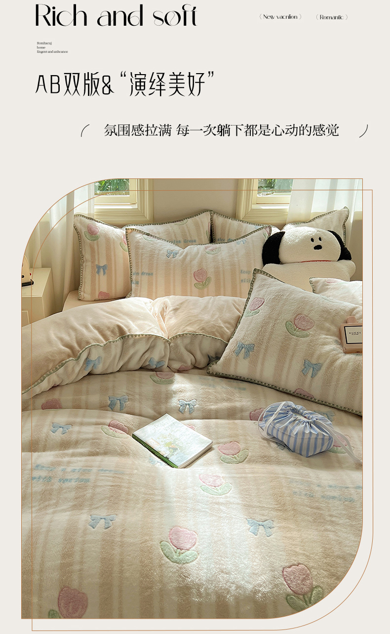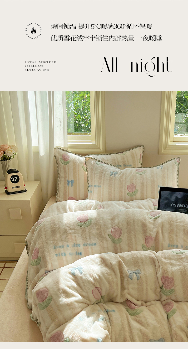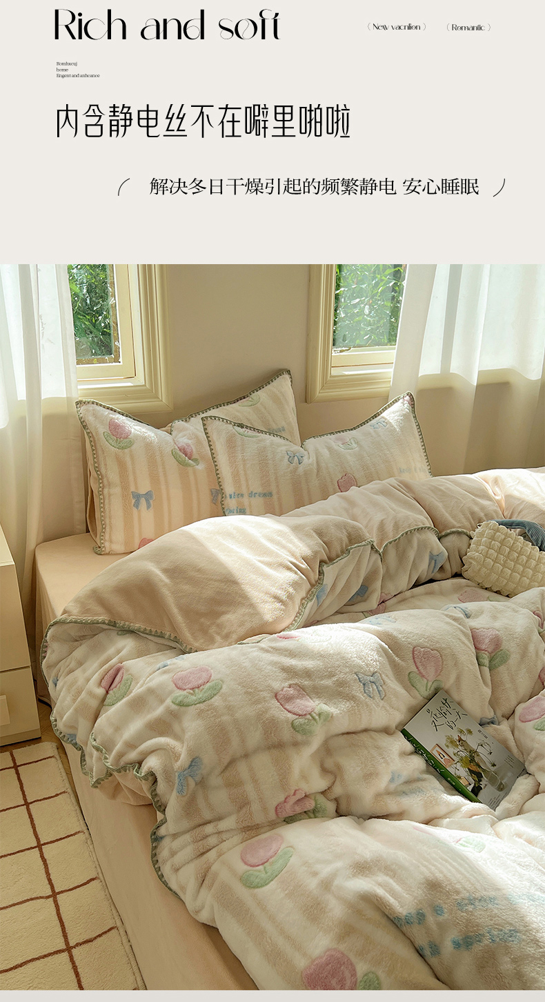 (总)三朵家纺 2024新款3D立体浮雕花边保暖加厚四件套,馥郁芳芬,花园小径粉,花园小径黄,绿野仙踪,暖暖花语