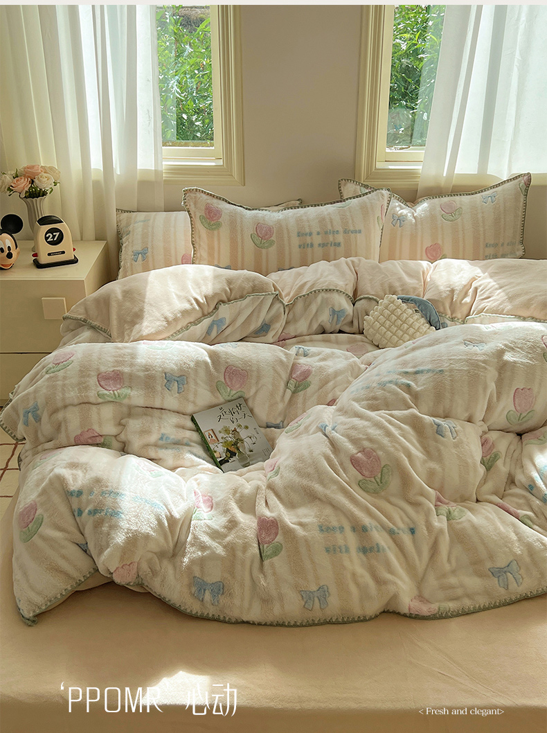 (总)三朵家纺 2025新款韩系花边雕花绒牛奶绒法莱绒四件套,茶语山樱-黄,茶语山樱-蓝,海棠秘境,精灵兔,恋花小经粉,恋花小经黄,绿野仙踪,蔷薇梦境,拾光里里,屋顶花园-黄,屋顶花园-紫,星点绮梦,鸢尾浅梦