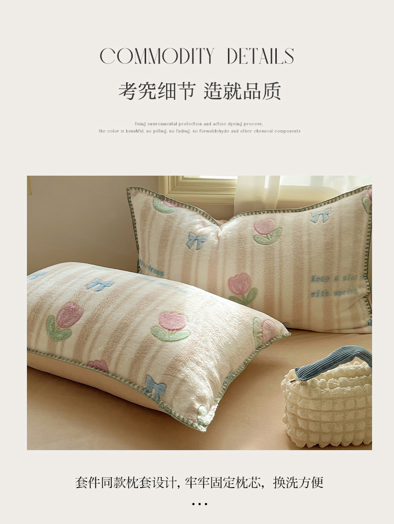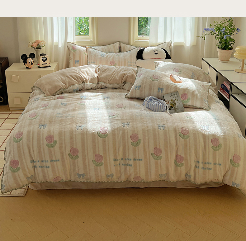 商品名称:三朵家纺 2023新款高克重雪花绒绒混搭系列四件套 蝴蝶结草莓